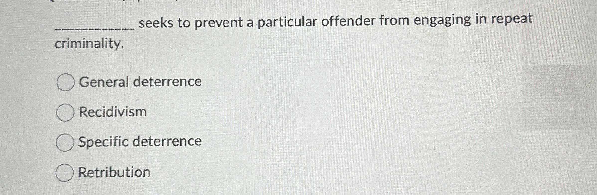 Solved seeks to prevent a particular offender from engaging | Chegg.com