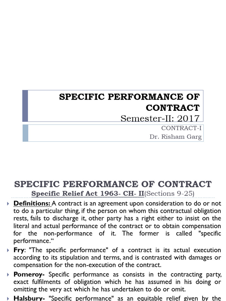 SPECIFIC PERFORMANCE OF CONTRACT NEW PPT.ppt | Breach Of Contract ...