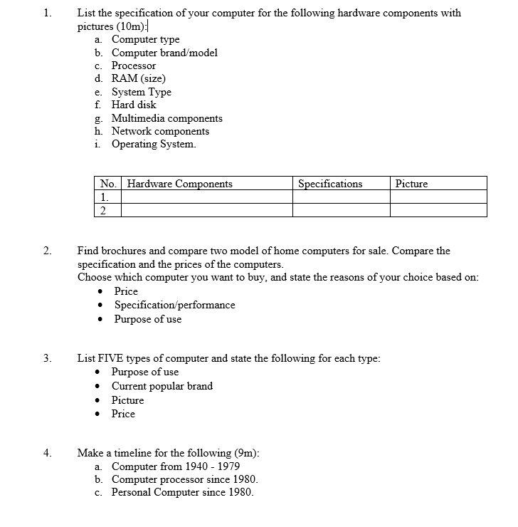 SOLUTION: Computer Hardware And Specifications with brief explanation ...