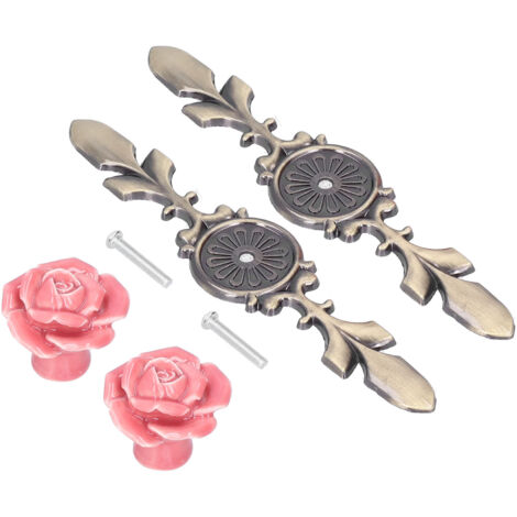 2Set Cabinet Knob Rose Flower Ceramic Pull Handle Closet Drawer Knob ...