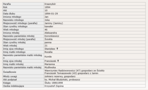 Akt ślubu Jana Joki i Aleksandry Koronkiewicz; Krasnybór, 1894 r ...