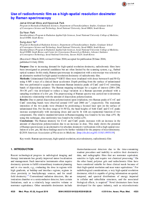 (PDF) Use of radiochromic film as a high-spatial resolution dosimeter ...