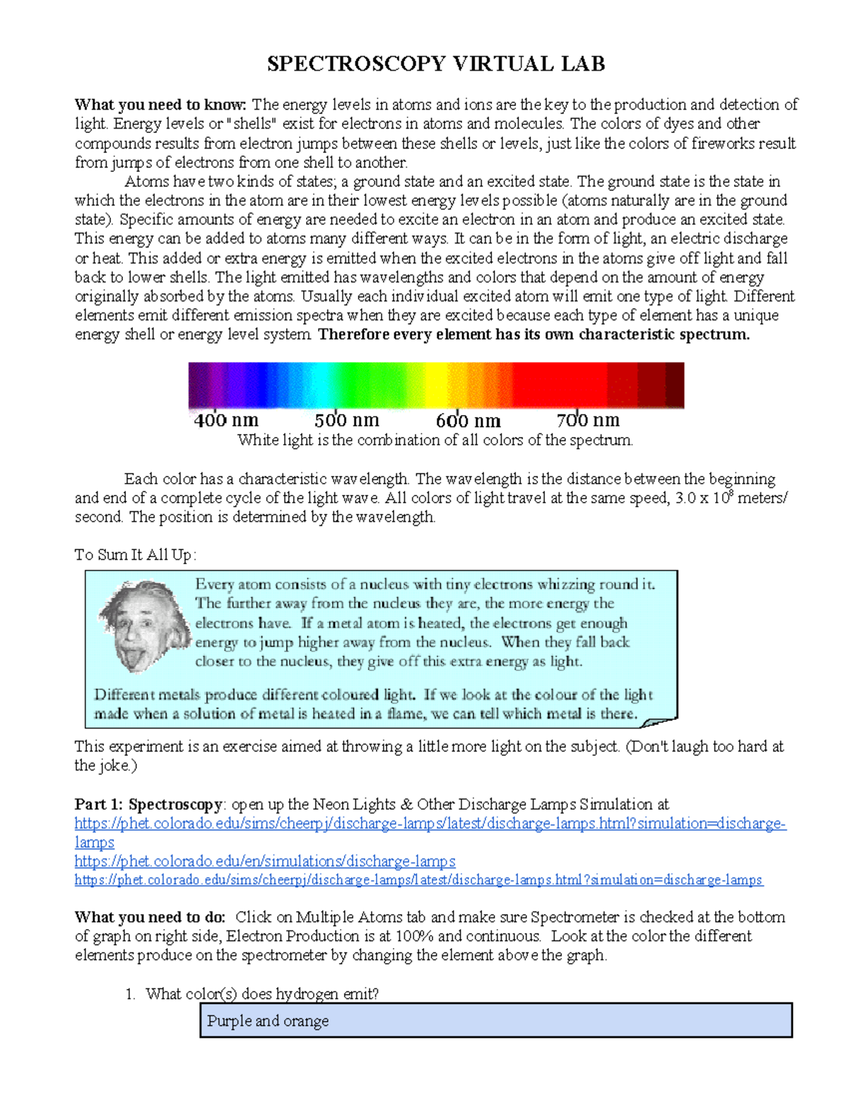 Understanding Spectroscopy Through Lab Activity: Answer Sheet | Course Hero