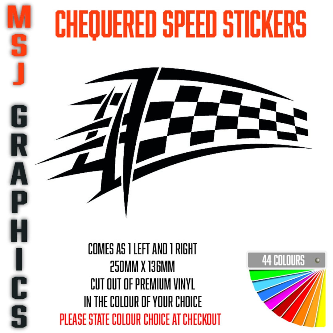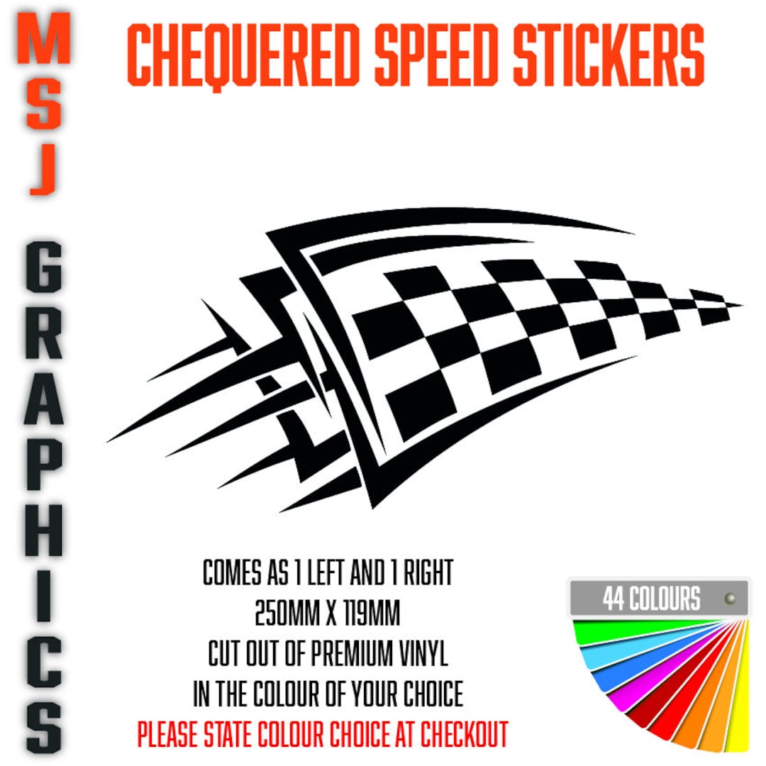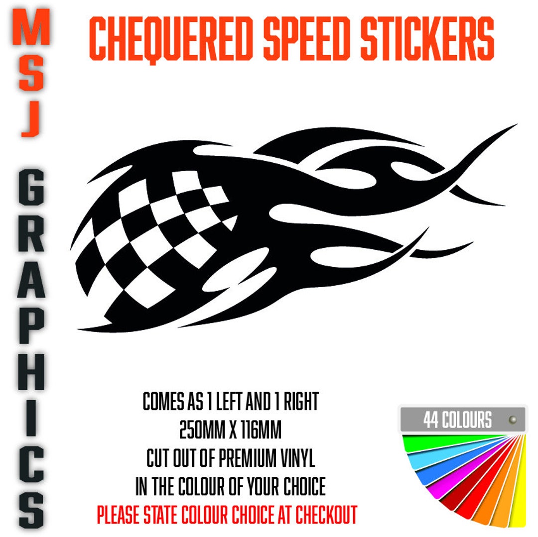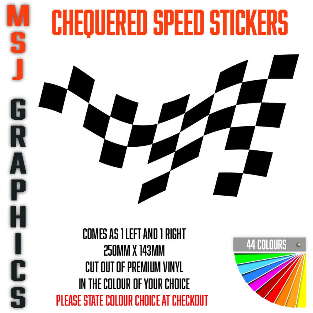 2x Chequered Speed Sticker Decals Car Truck Bike Adhesive Vinyl 250mm X ...