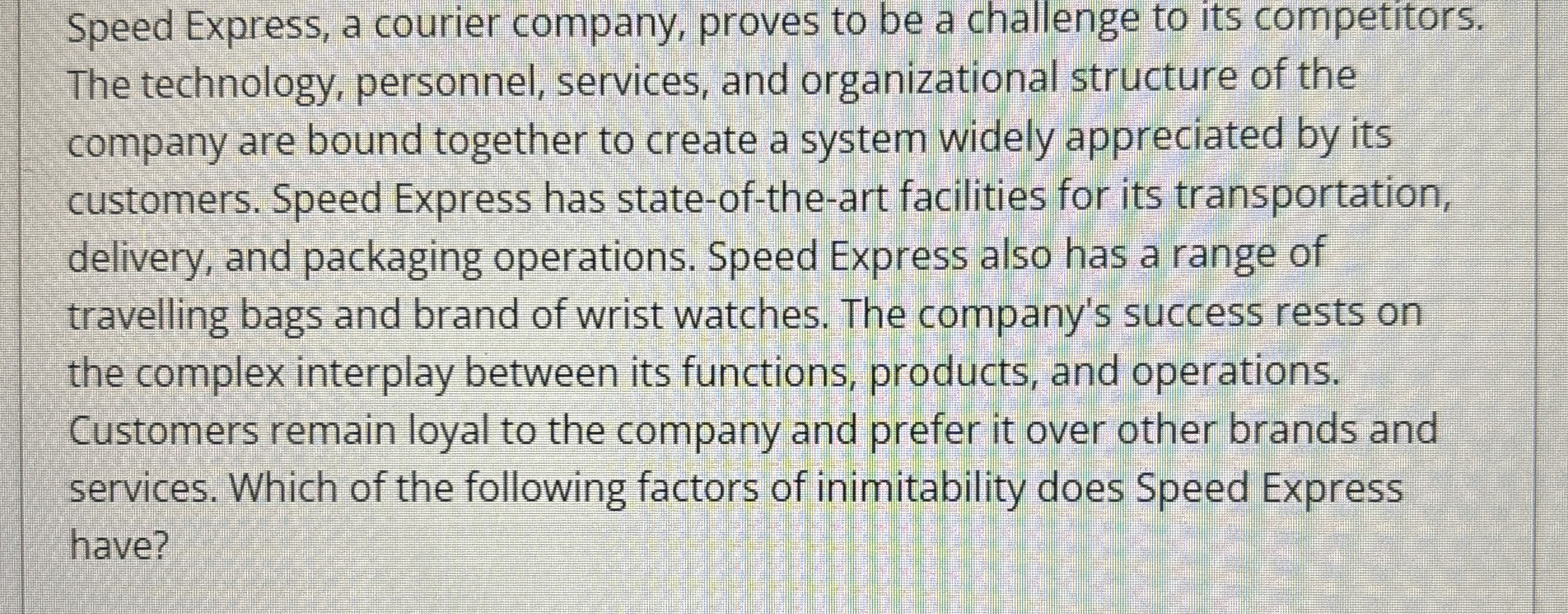 Solved Speed Express, a courier company, proves to be a | Chegg.com