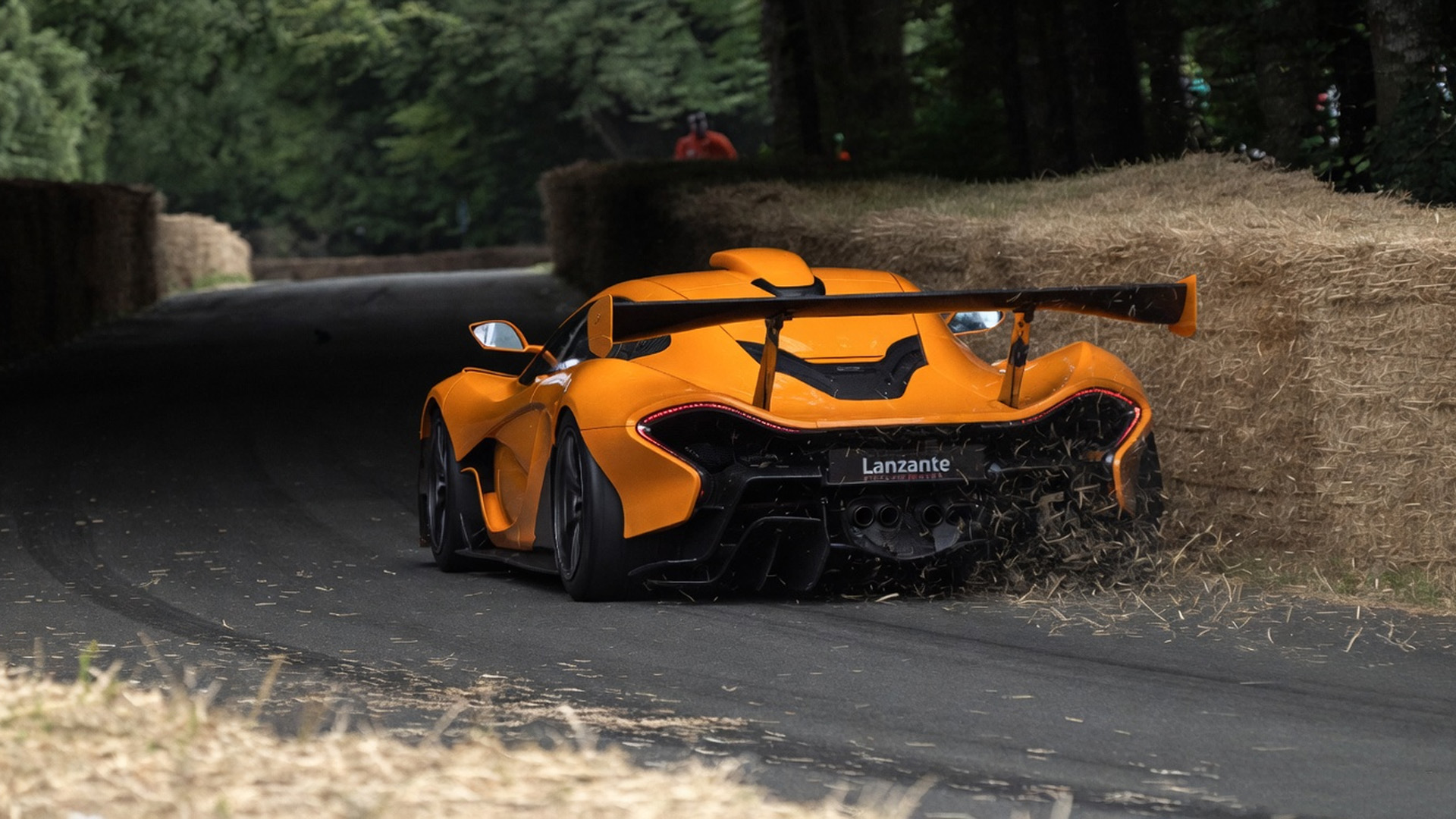 McLaren P1 GT running at full speed too close to track barrier