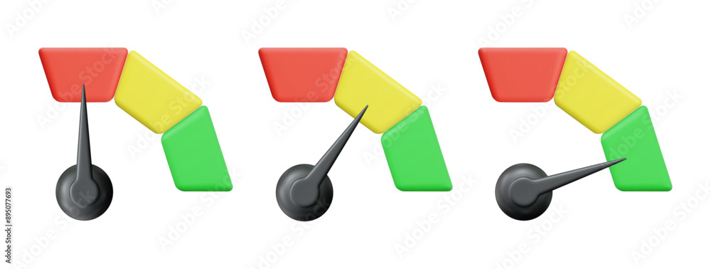 3d speedometer icon. Low, middle and high speed status. Scale score of ...