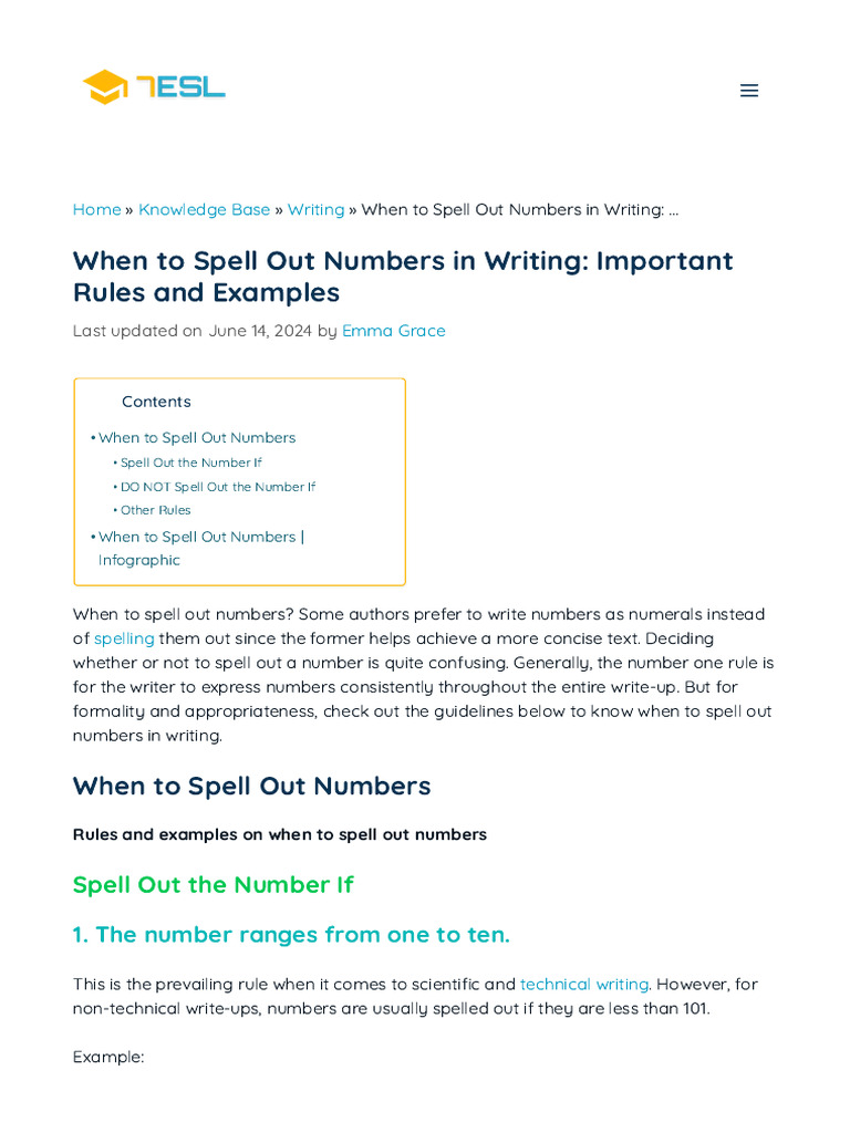 When to Spell Out Numbers in Writing: Important Rules and Examples • 7ESL