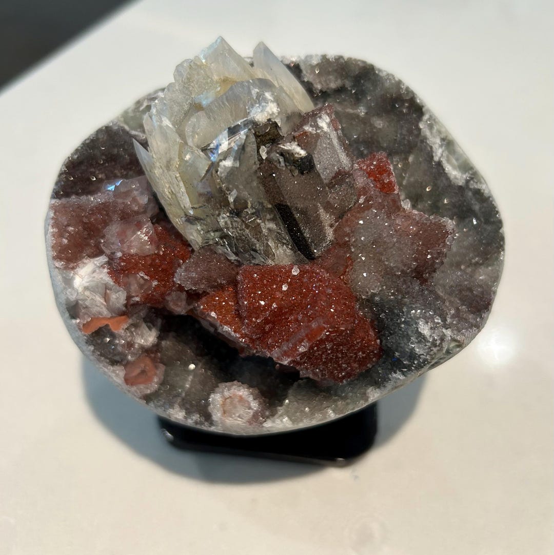 Spherical Geode With Red, White, and Gray Crystal and Druzy Formations ...