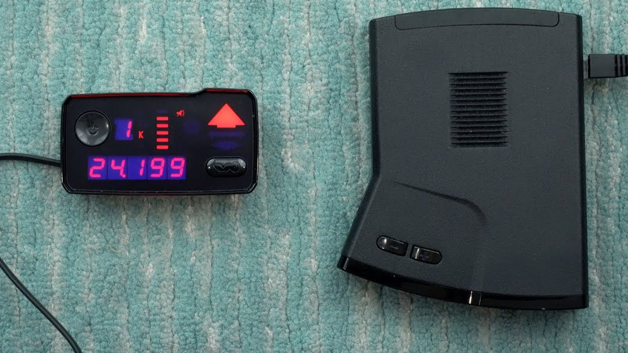 This radar detector uses a frequency display