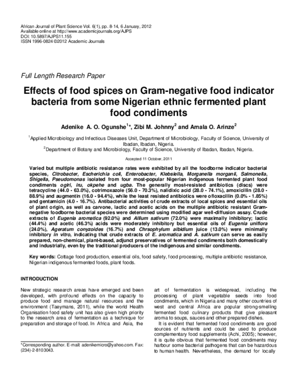 (PDF) Effects of food spices on Gram-negative food indicator bacteria ...