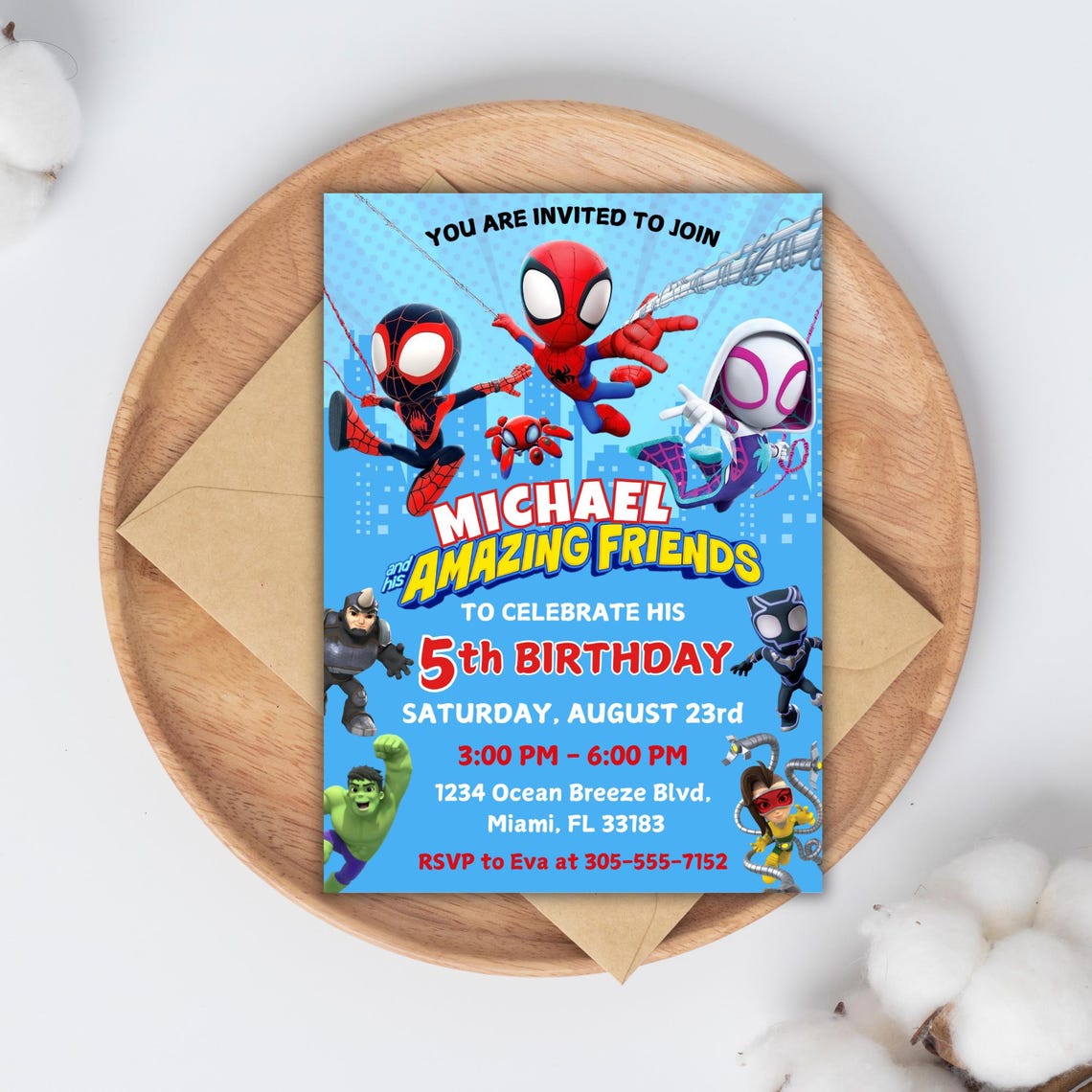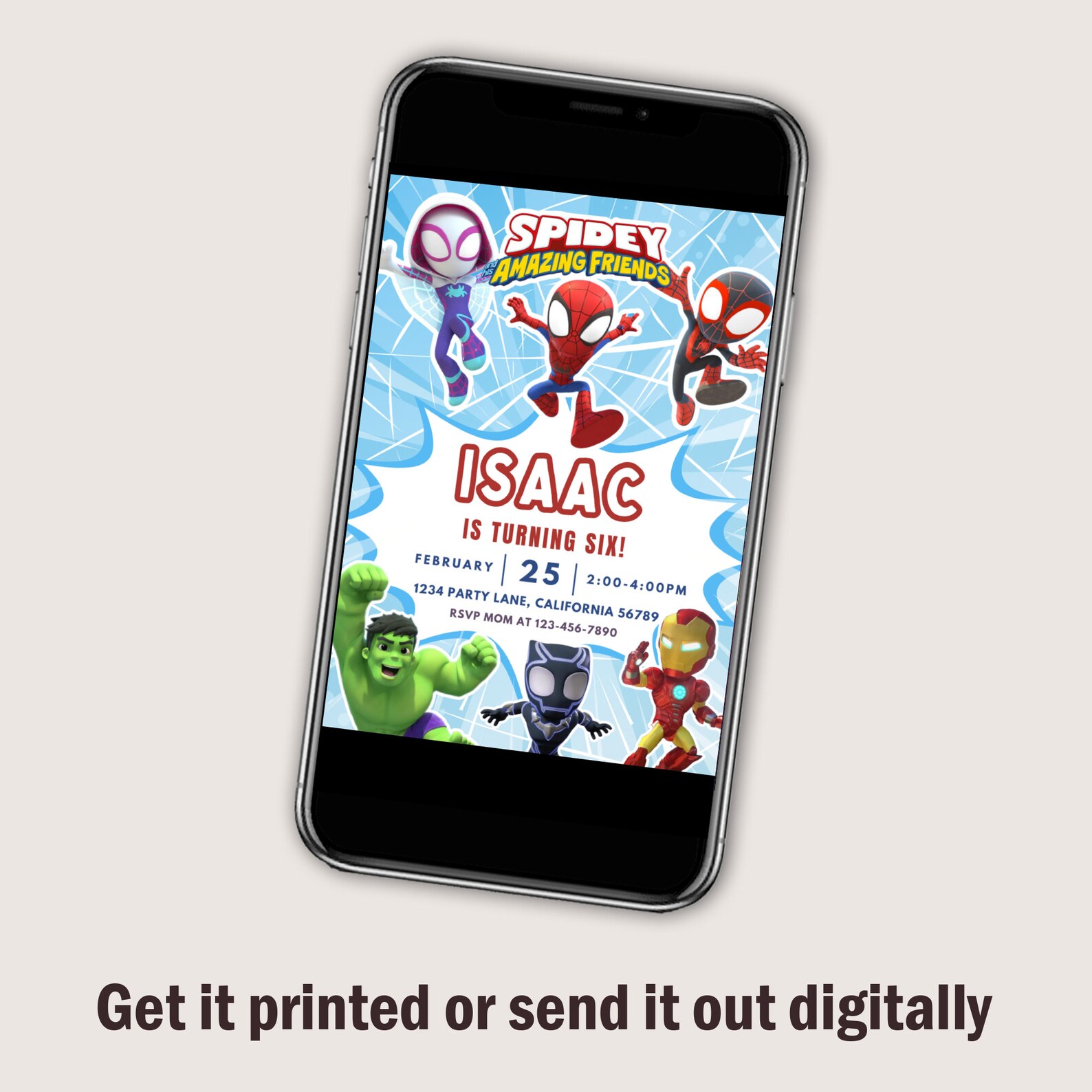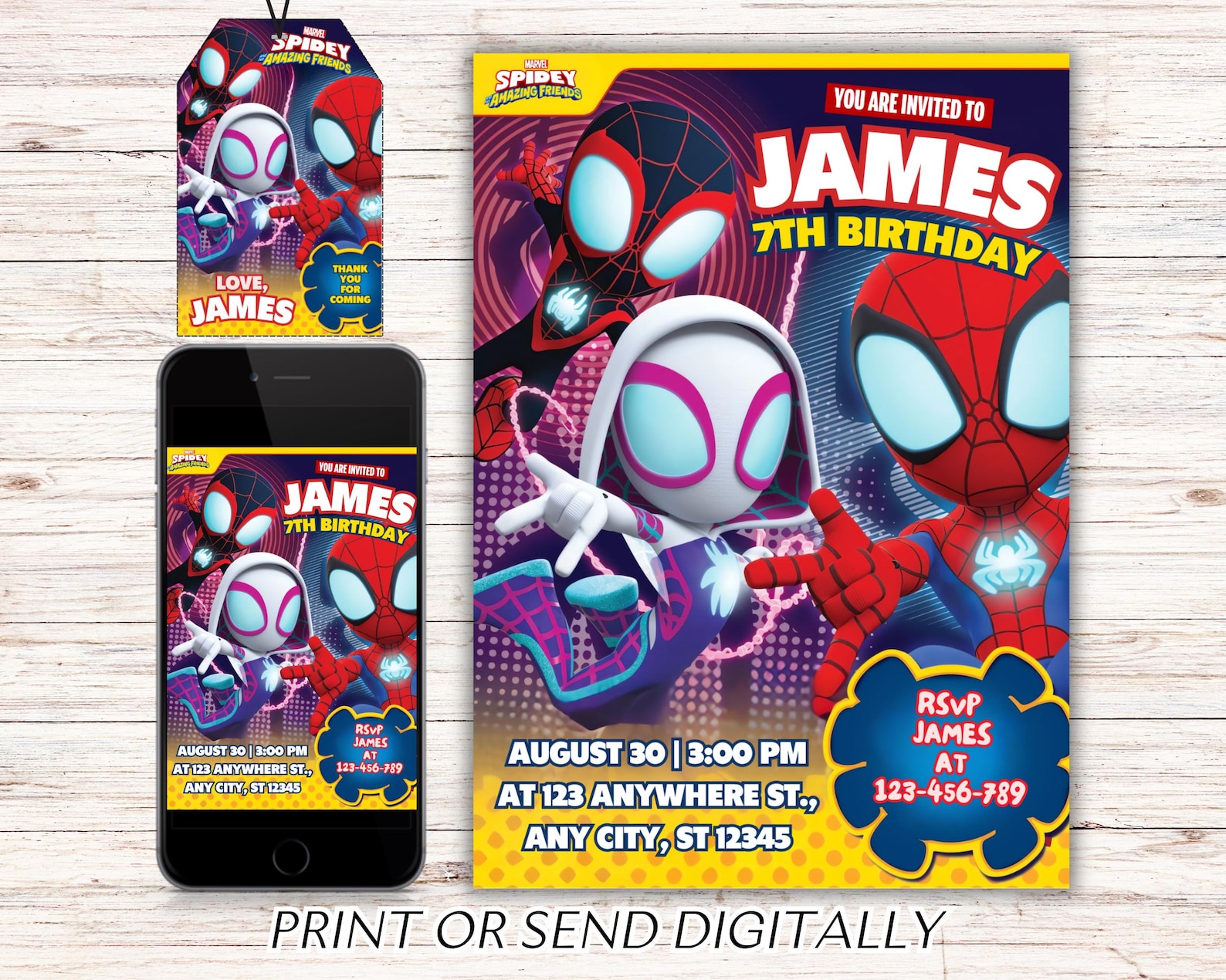 Digital Spidey & his Amazing Friends Birthday Invitation template ...