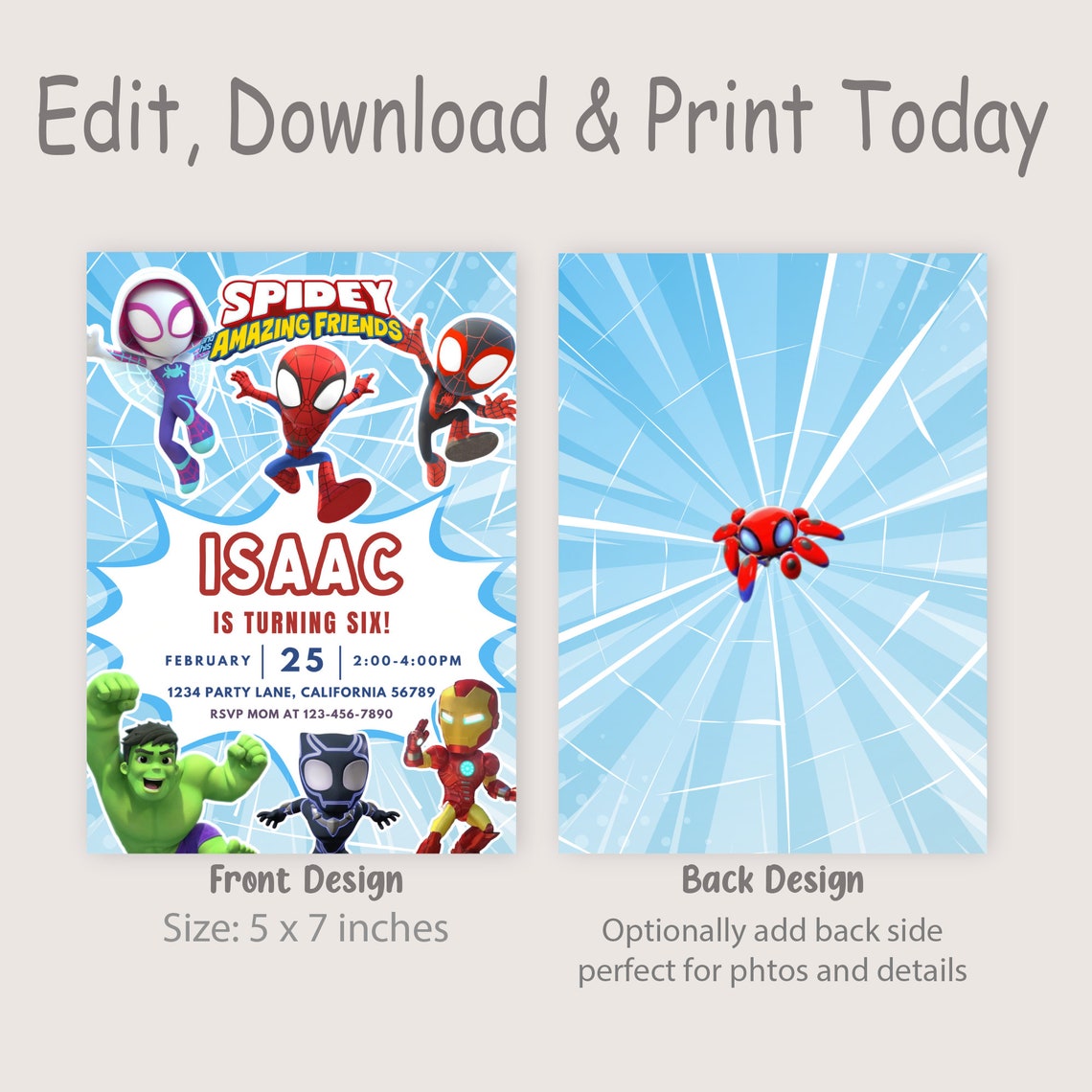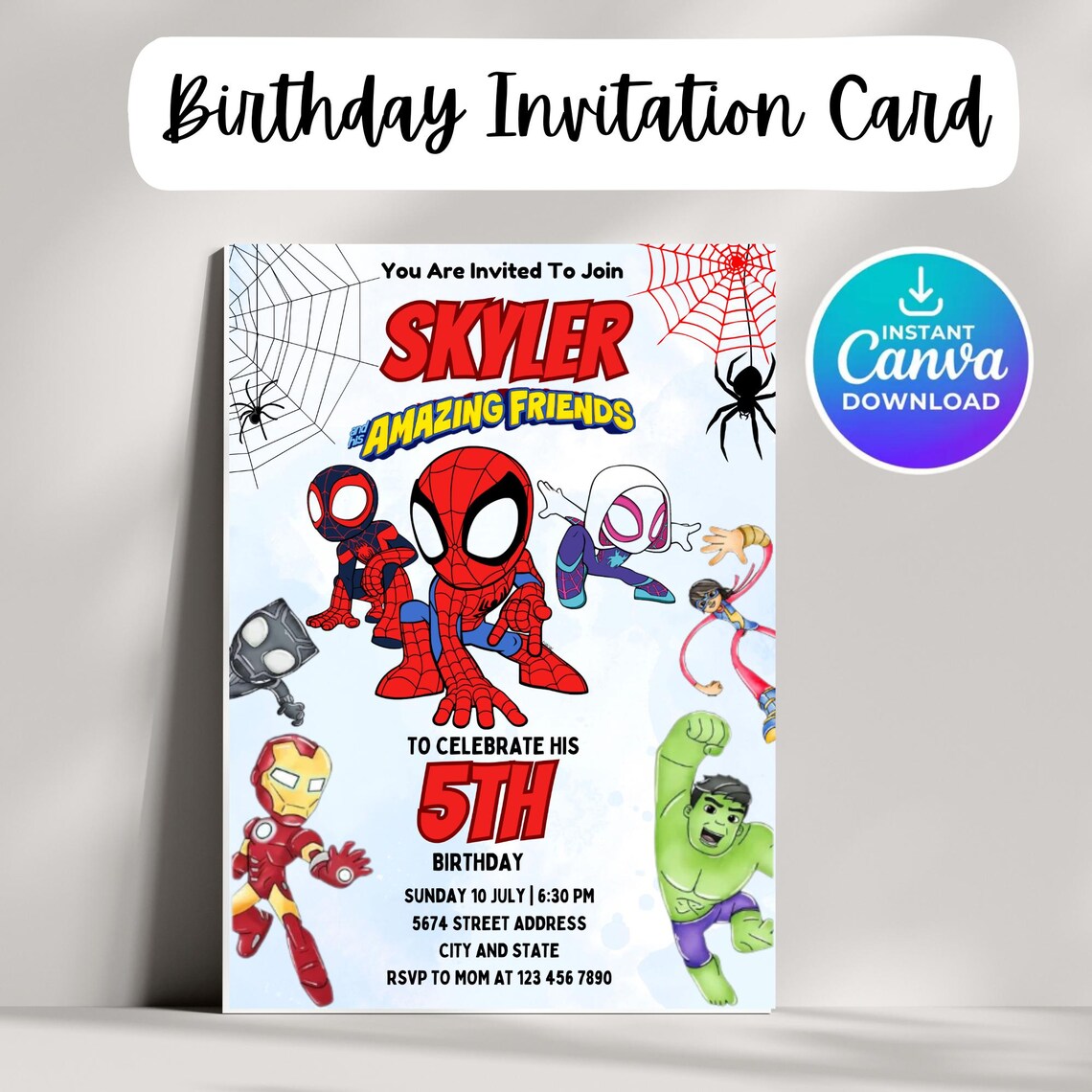 Spidey and his Amazing Friends Birthday Invitation, Editable - Inspire ...