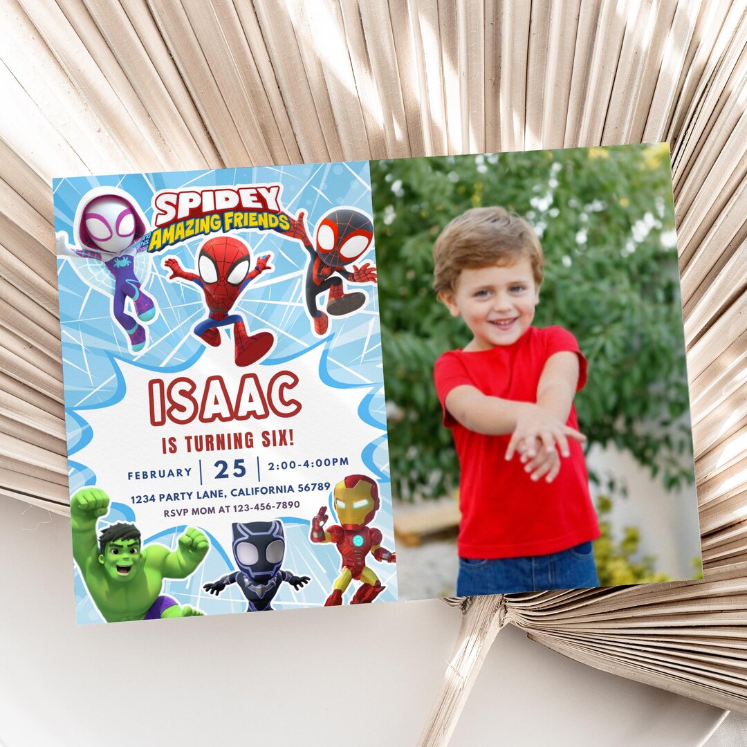 Spidey and His Amazing Friends Birthday Invitation With Photo Spidey ...