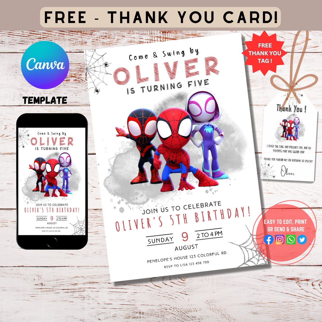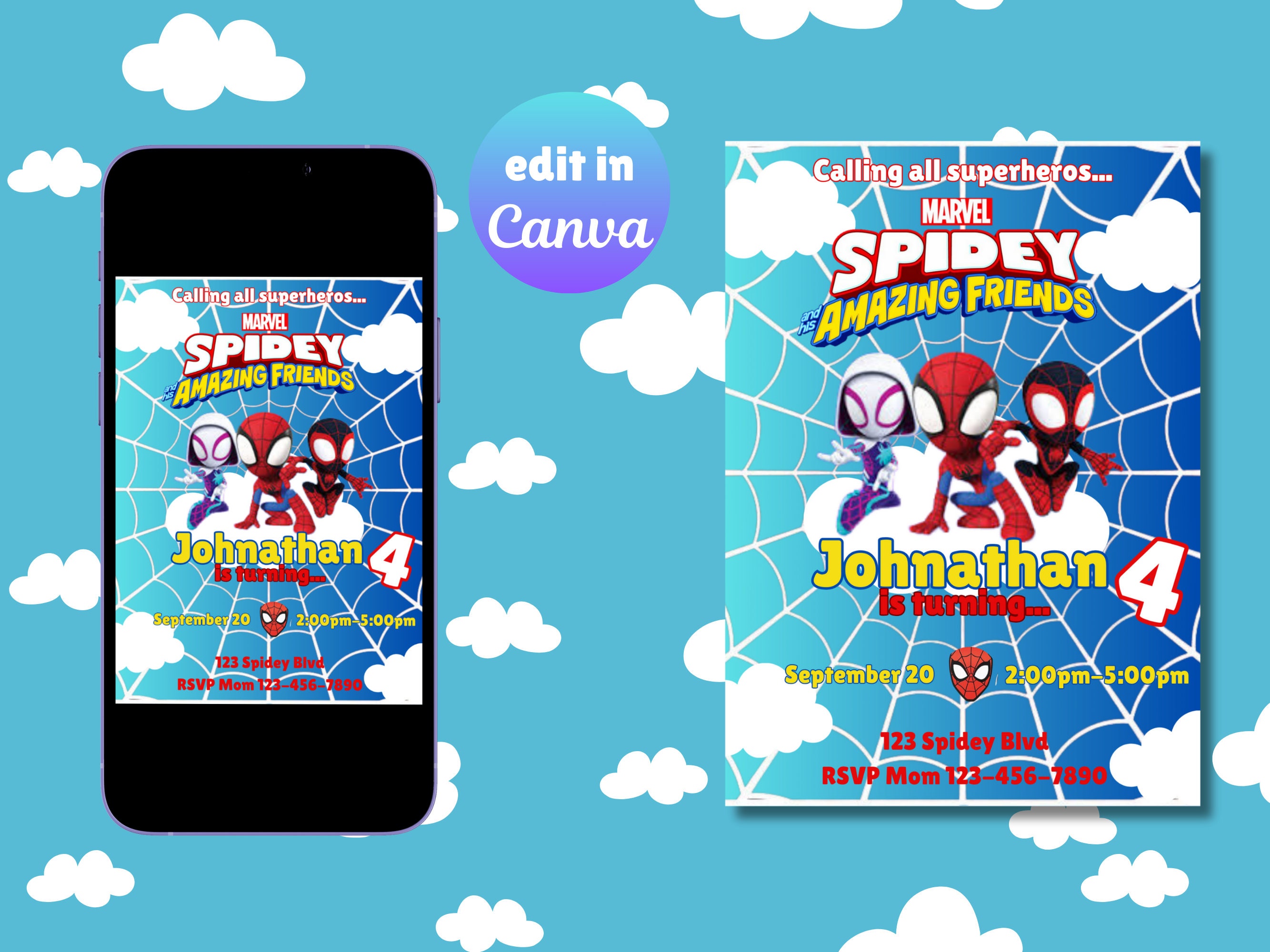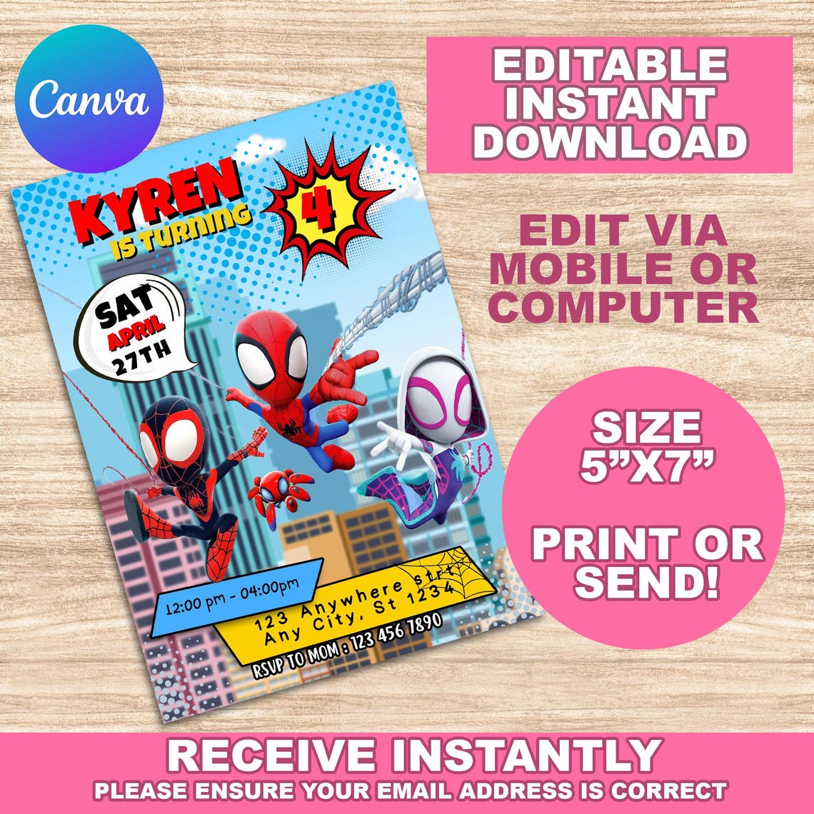 Spidey and Friends Invitation: Editable Canva Template (Digital ...