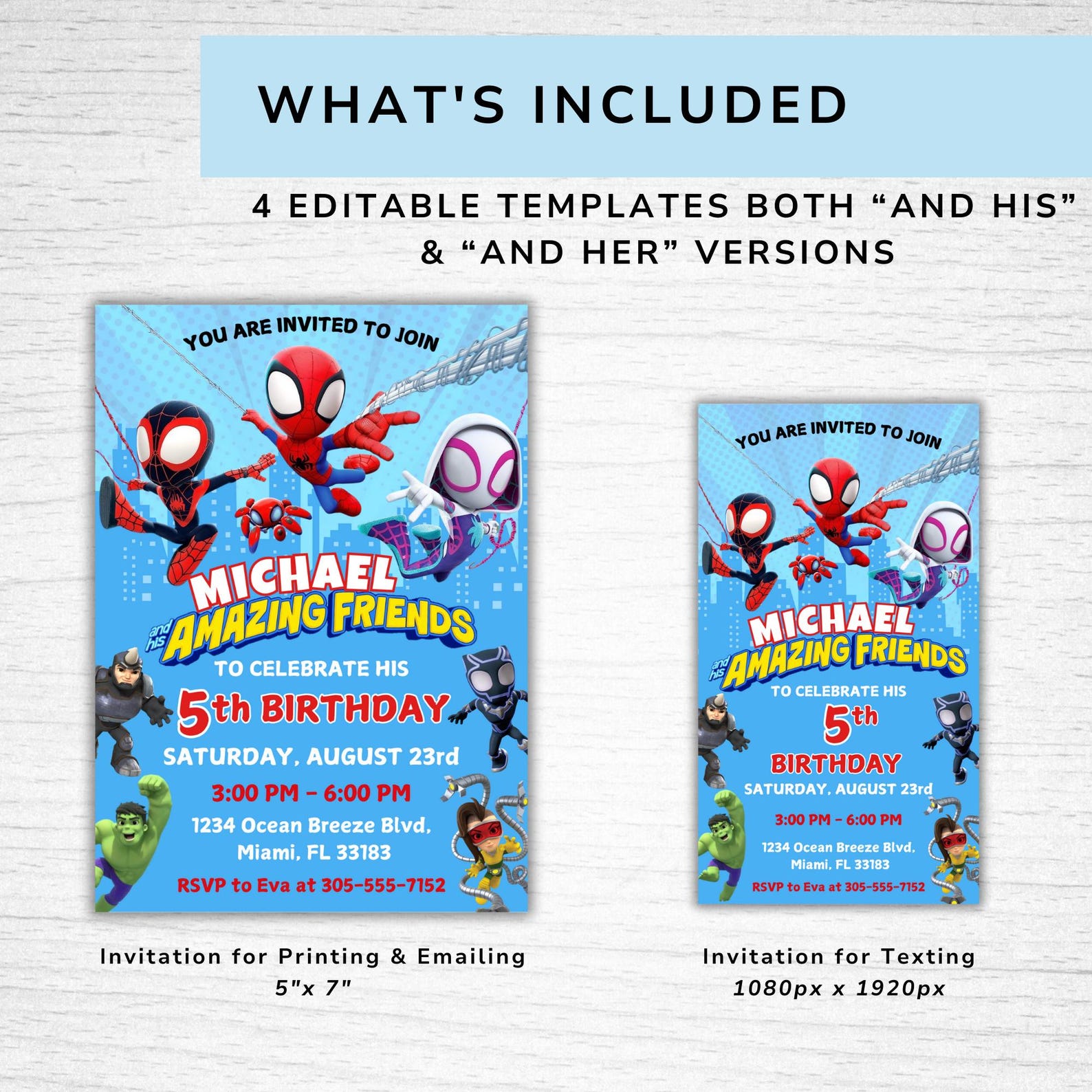 Editable Spidey and His Amazing Friends Birthday Invitation | Template ...