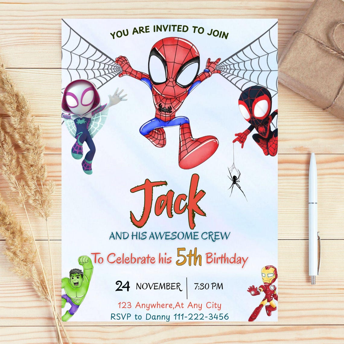 Spidey and Friends Birthday Invitation: Editable Theme Party (digital ...