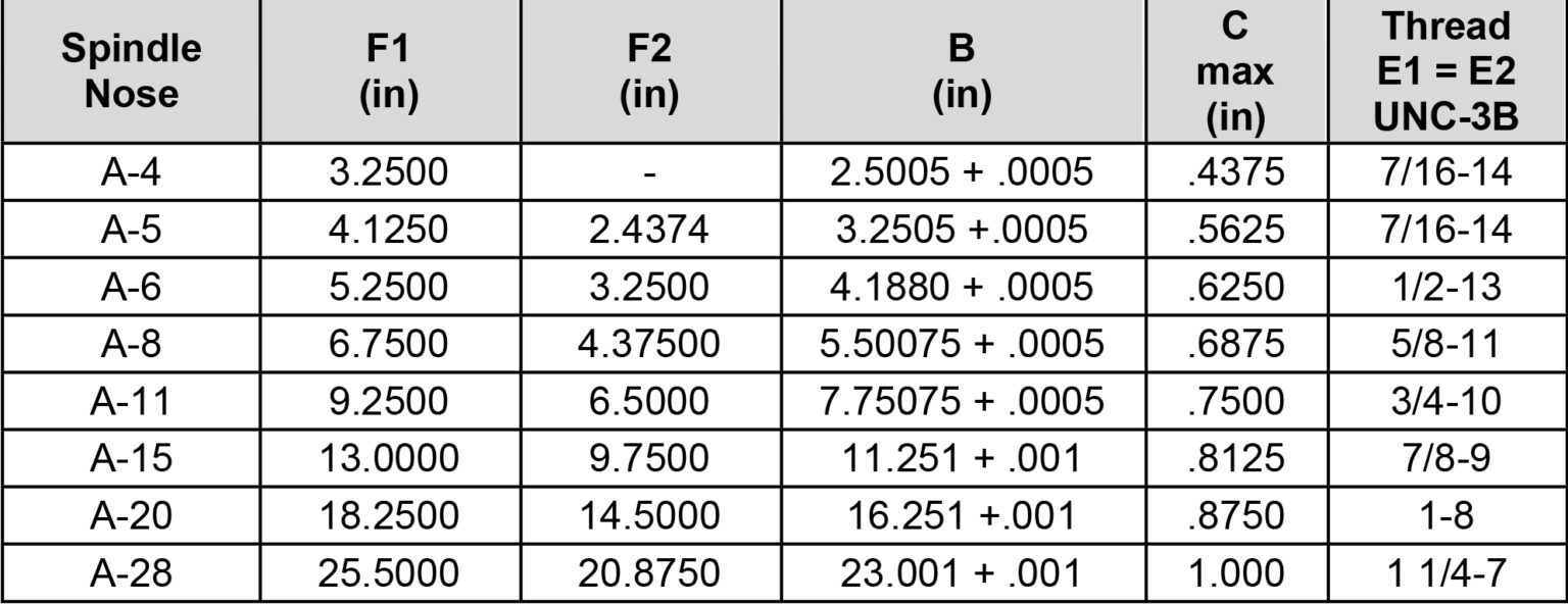 Less Common Spindle Nose Fittings - Newmac Equipment