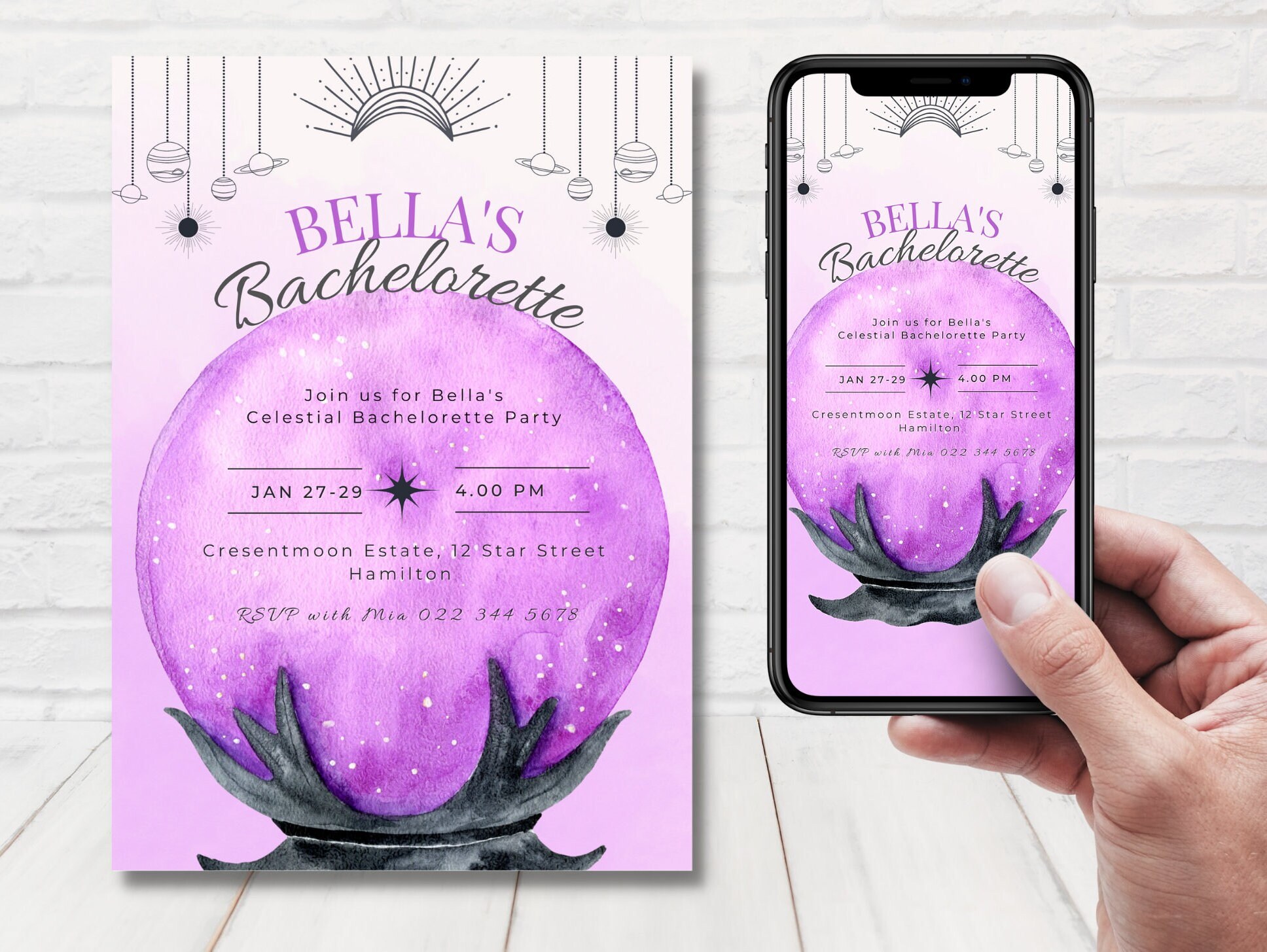 Purple Celestial Bachelorette Invitation, Celestial Bridal Shower ...
