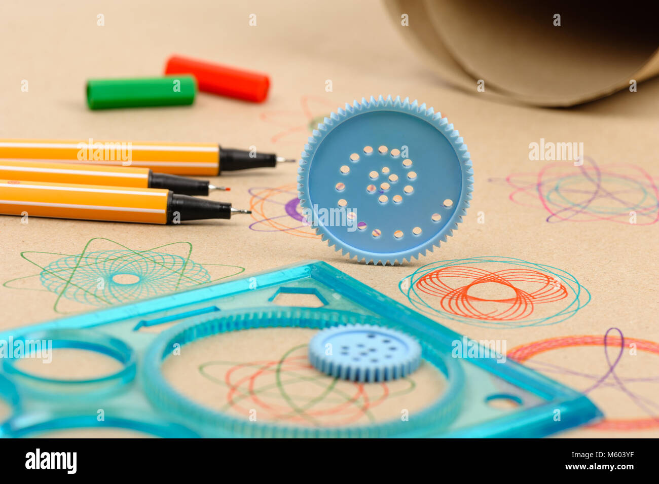 Drawing the spirograph pattern with spirograph kit Stock Photo - Alamy