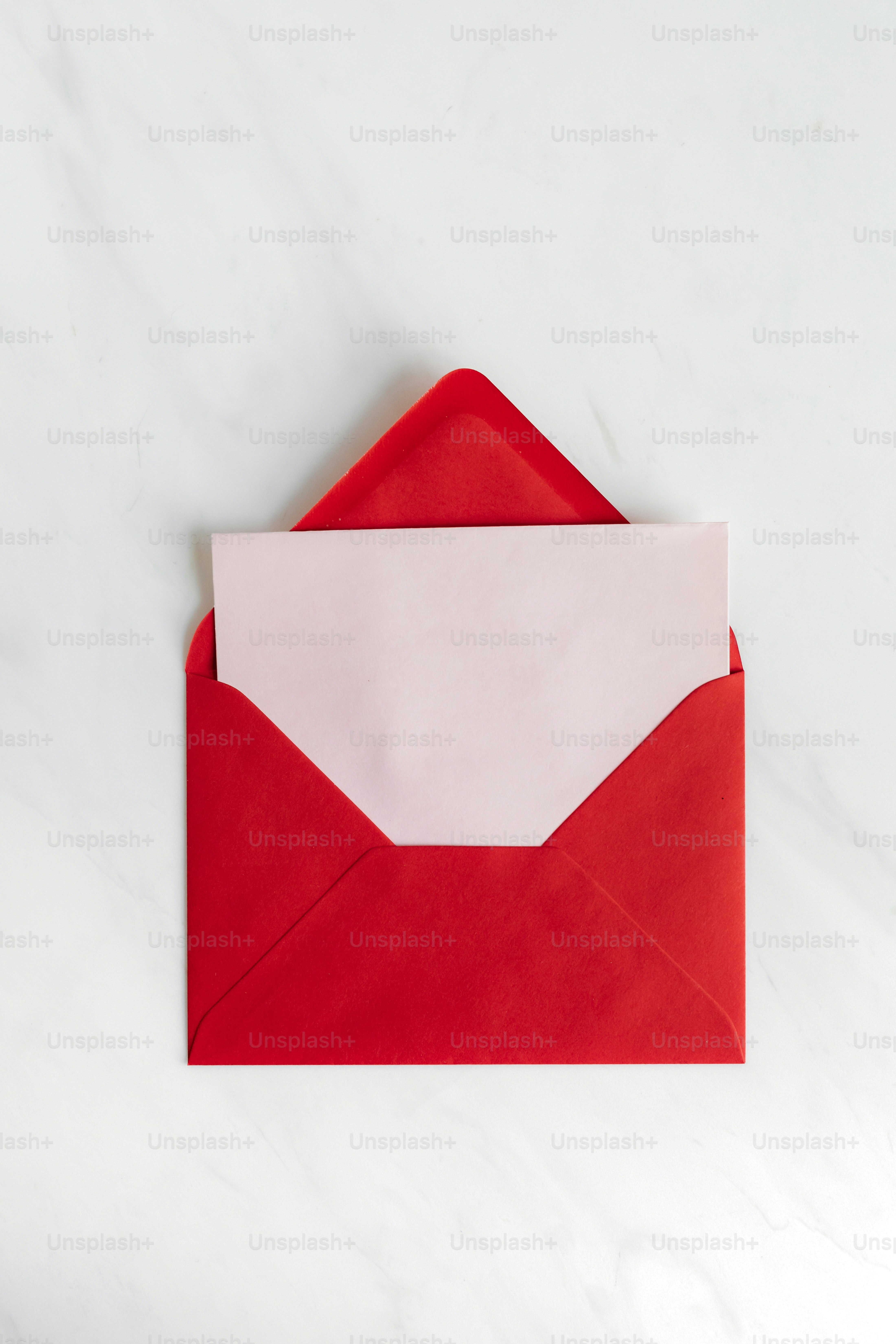 A red envelope with a pink card on marble photo – Communication Image ...