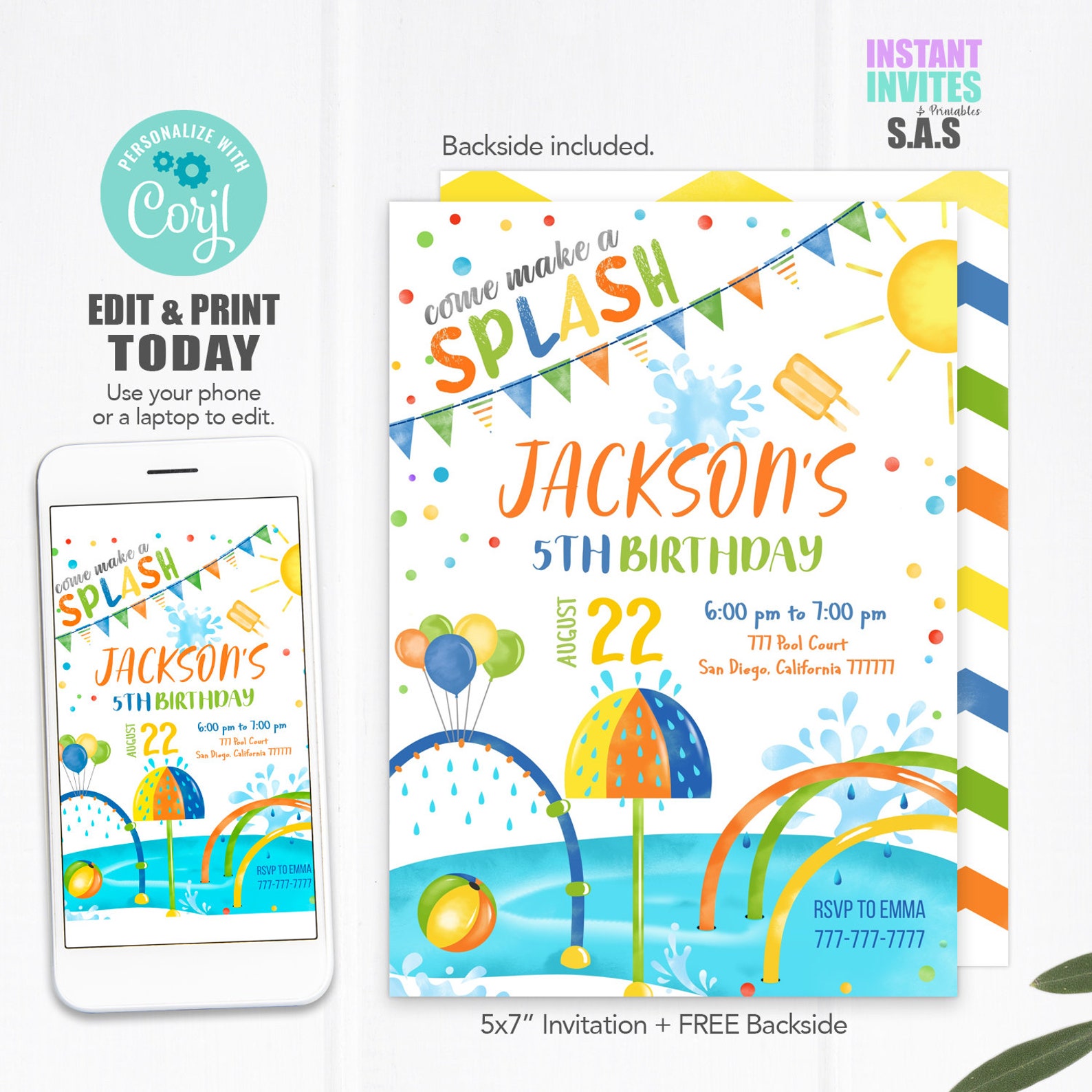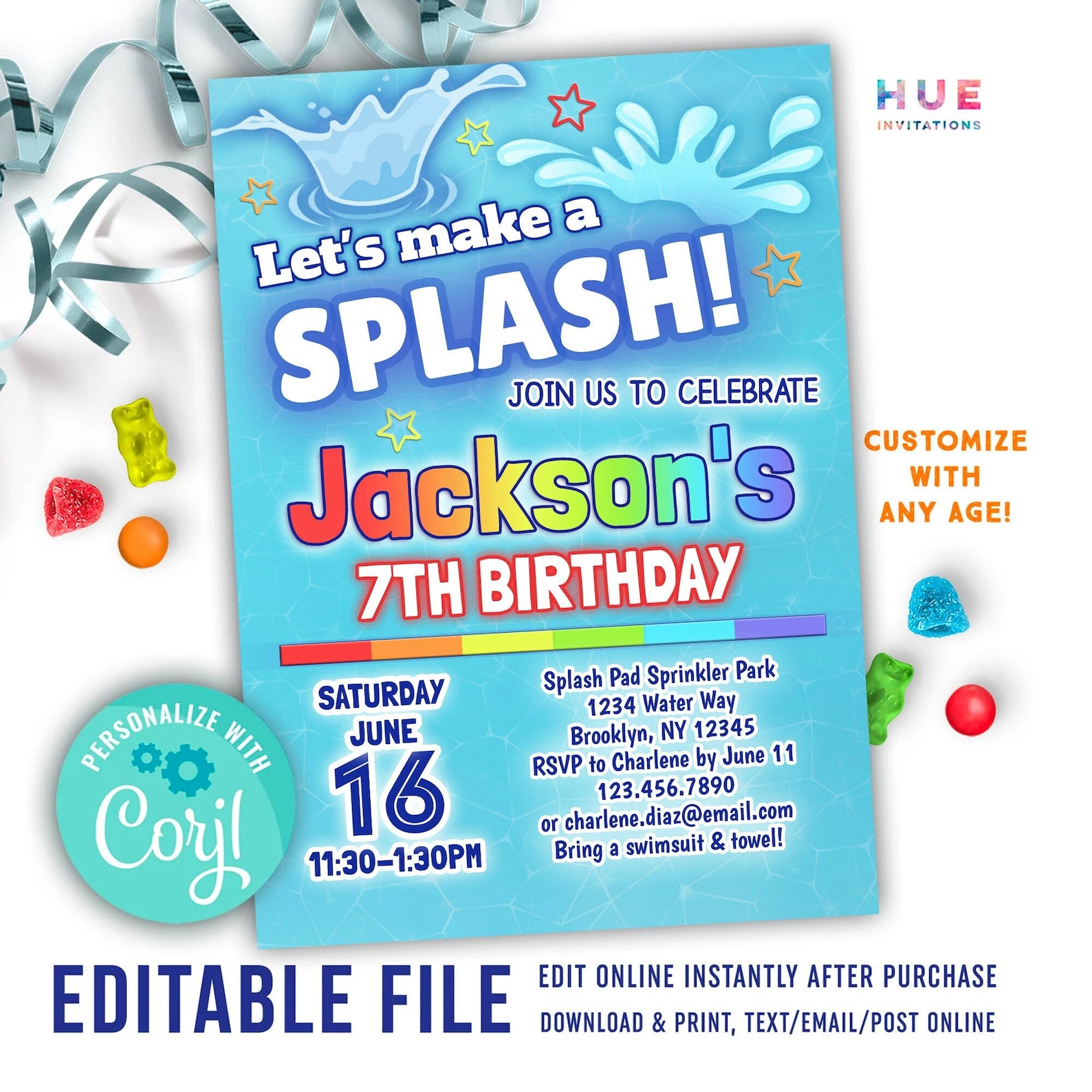 Splash Pad Party Invitation, Editable Splash Invitation, Water Park ...
