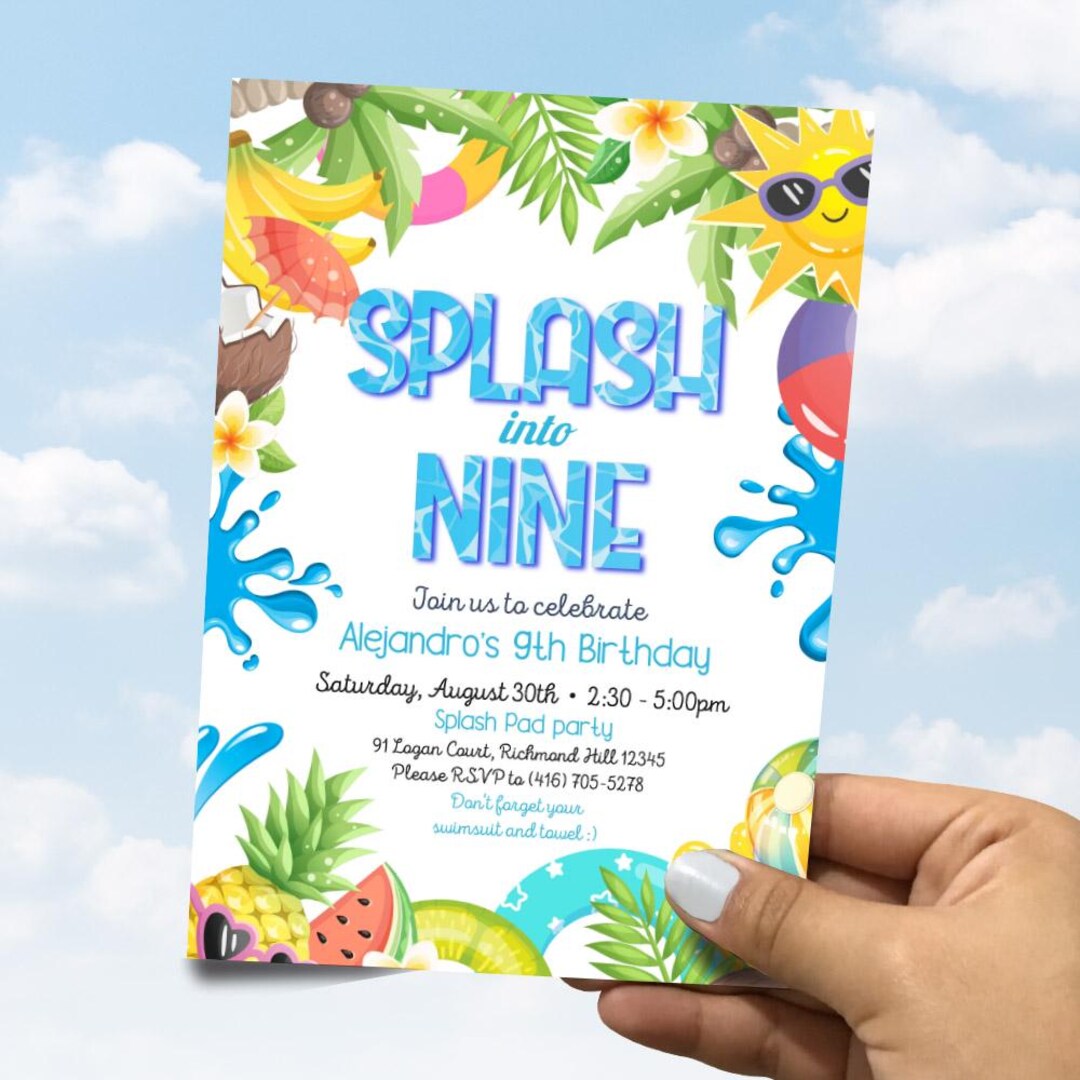 Customizable Splash Party Invitation, Splash Into Nine Pool Party ...