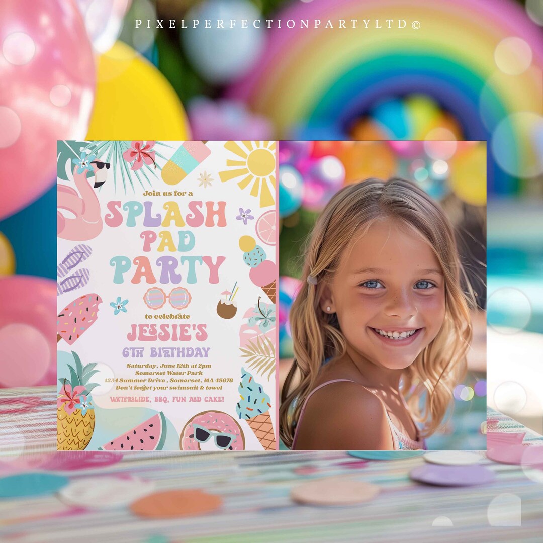 Girls Splash Pad Party Invitation With a Photo | Sprinkler Park ...