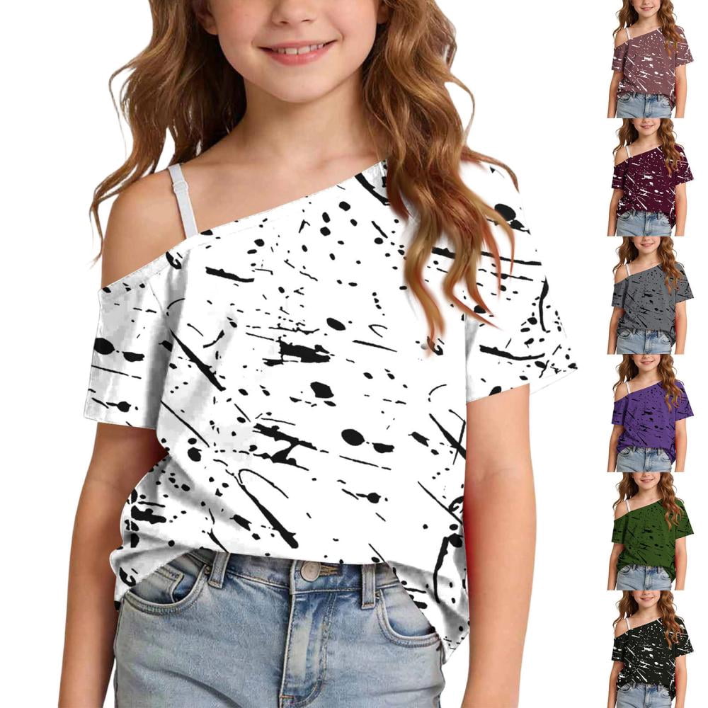 Bxsruta Girls Off The Shoulder Short Sleeve Loose Fit Pullover Top Cute ...