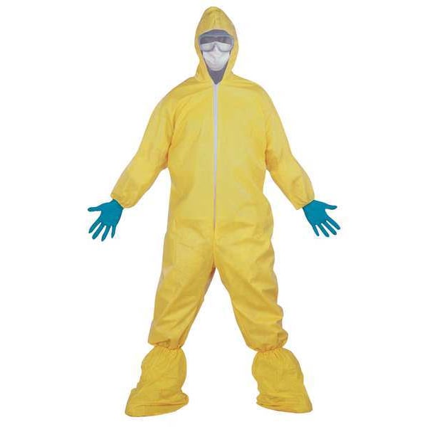 KLEENGUARD A70 Chemical Splash Protection Coveralls, Yellow, 4XL, Hood ...