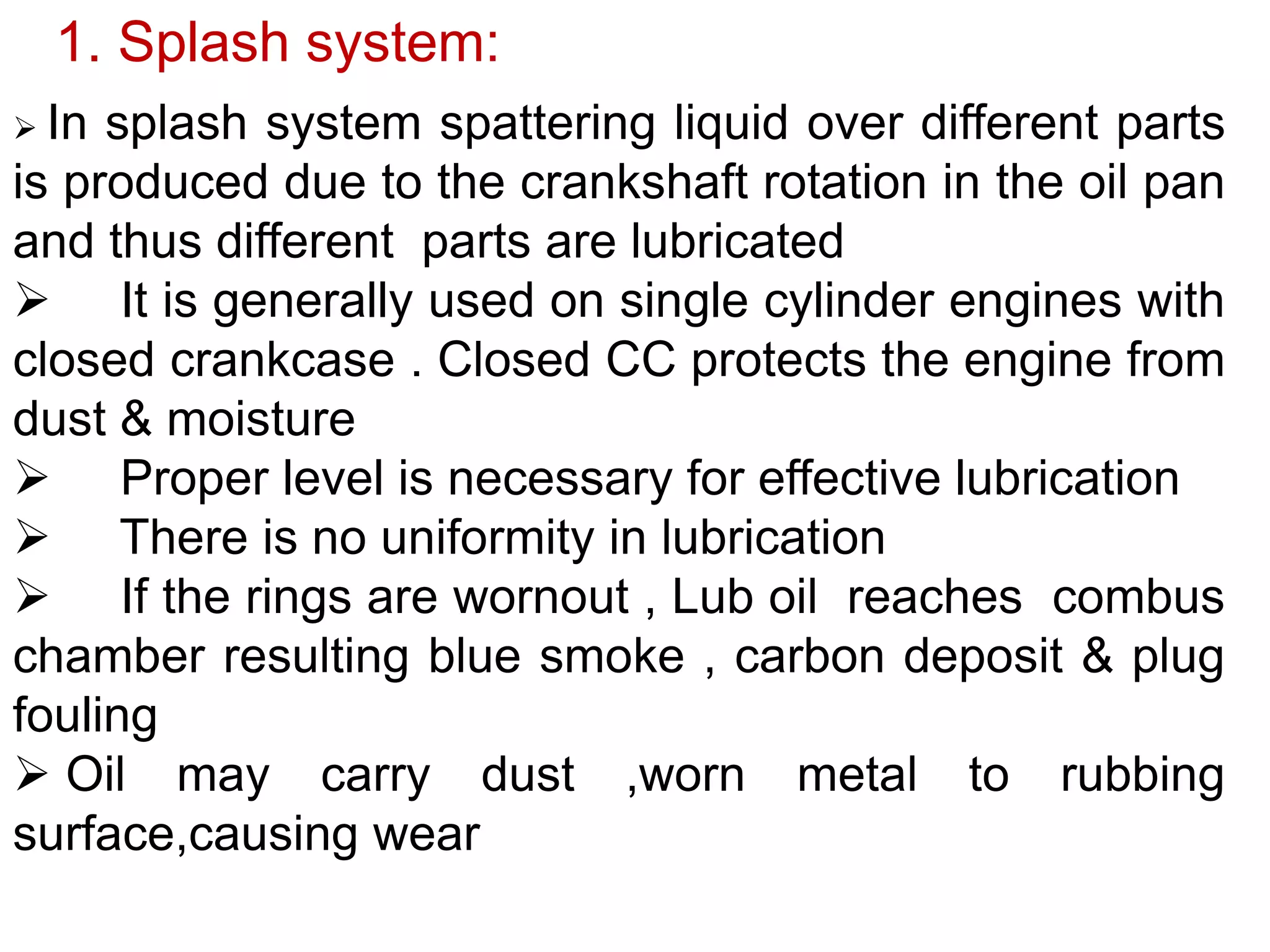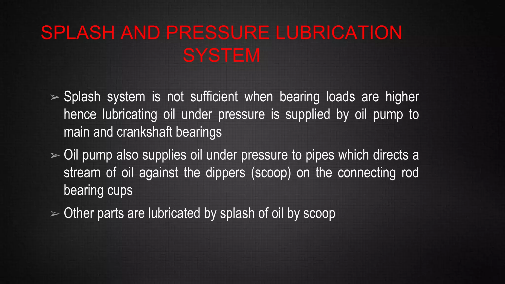 SPLASH LUBRICATION SYSTEM USED IN IC ENGINES