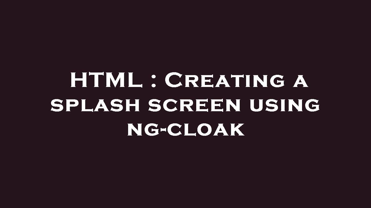 HTML : Creating a splash screen using ng-cloak - YouTube