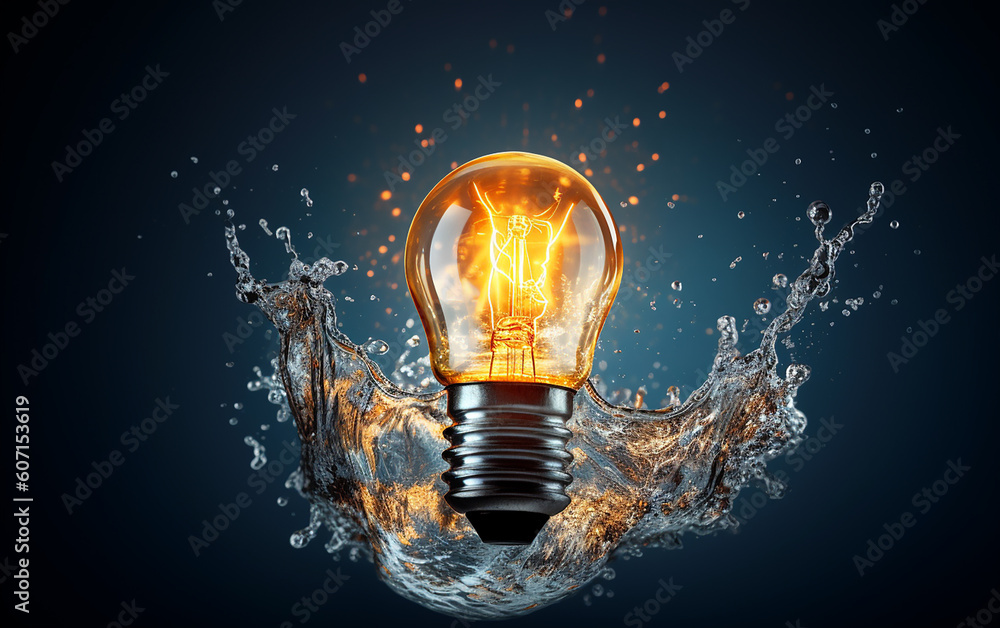 Premium Photo | Light bulb from water splash. mixed media
