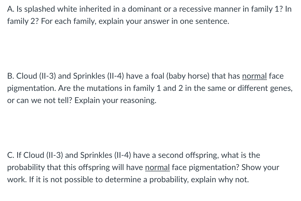 Solved "Splashed white" is a white face spotting pattern in | Chegg.com