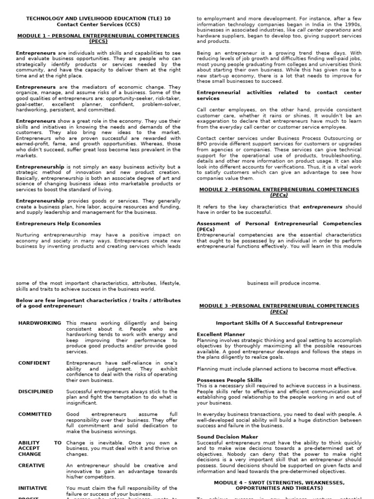 Information Sheet Modules 1 18 | PDF | Outsourcing | Entrepreneurship