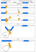 Splicing cycle. Black and gray boxes represent exons, black ...