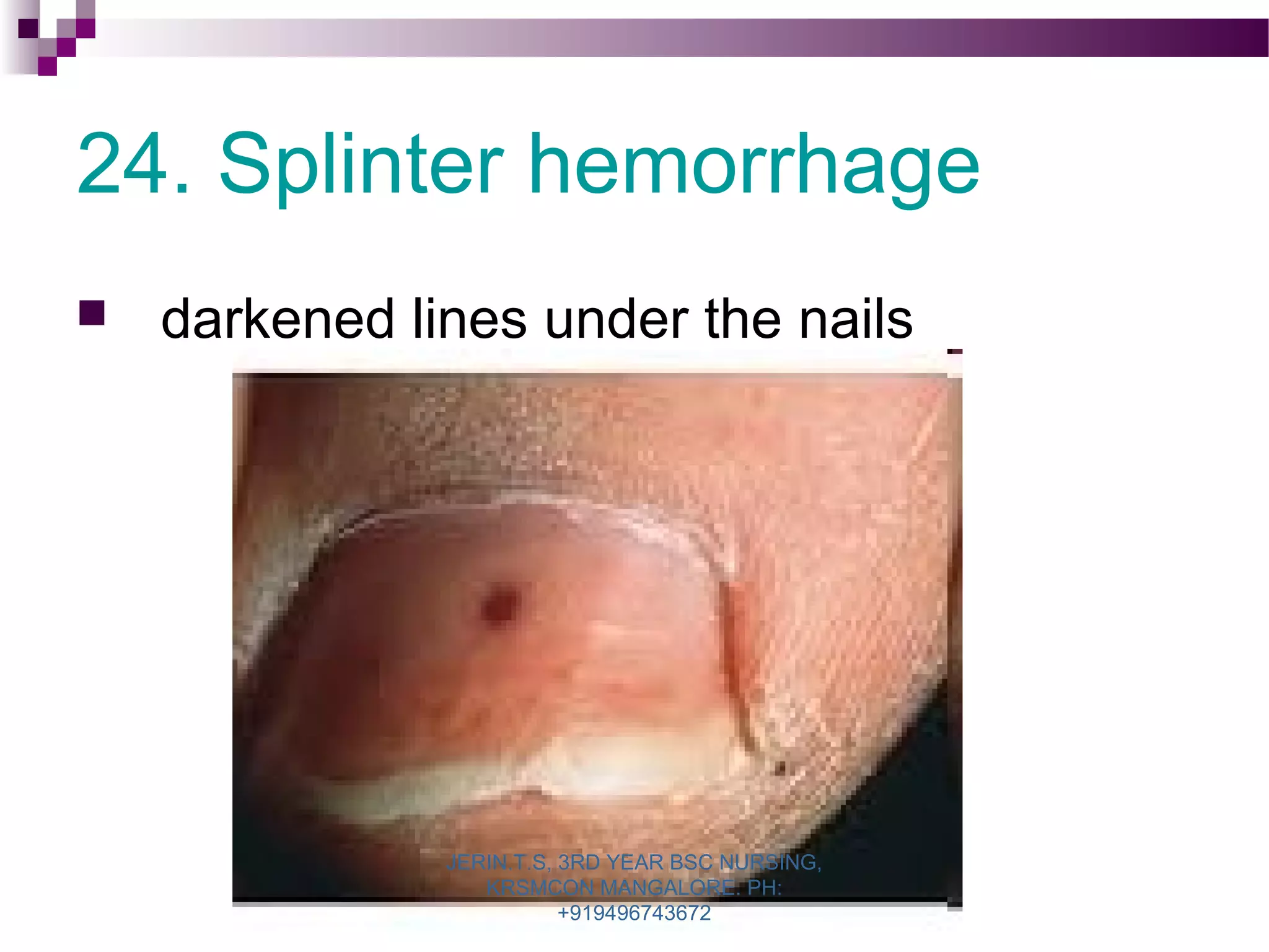 Splinter hemorrhage on the 2nd through the 5th left digits and distal ...