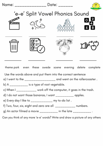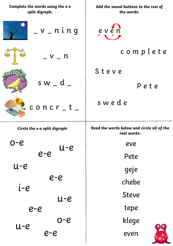 'e-e' split Vowel Digraph Phonics Sound Worksheet Activity (Set 3 RWI ...