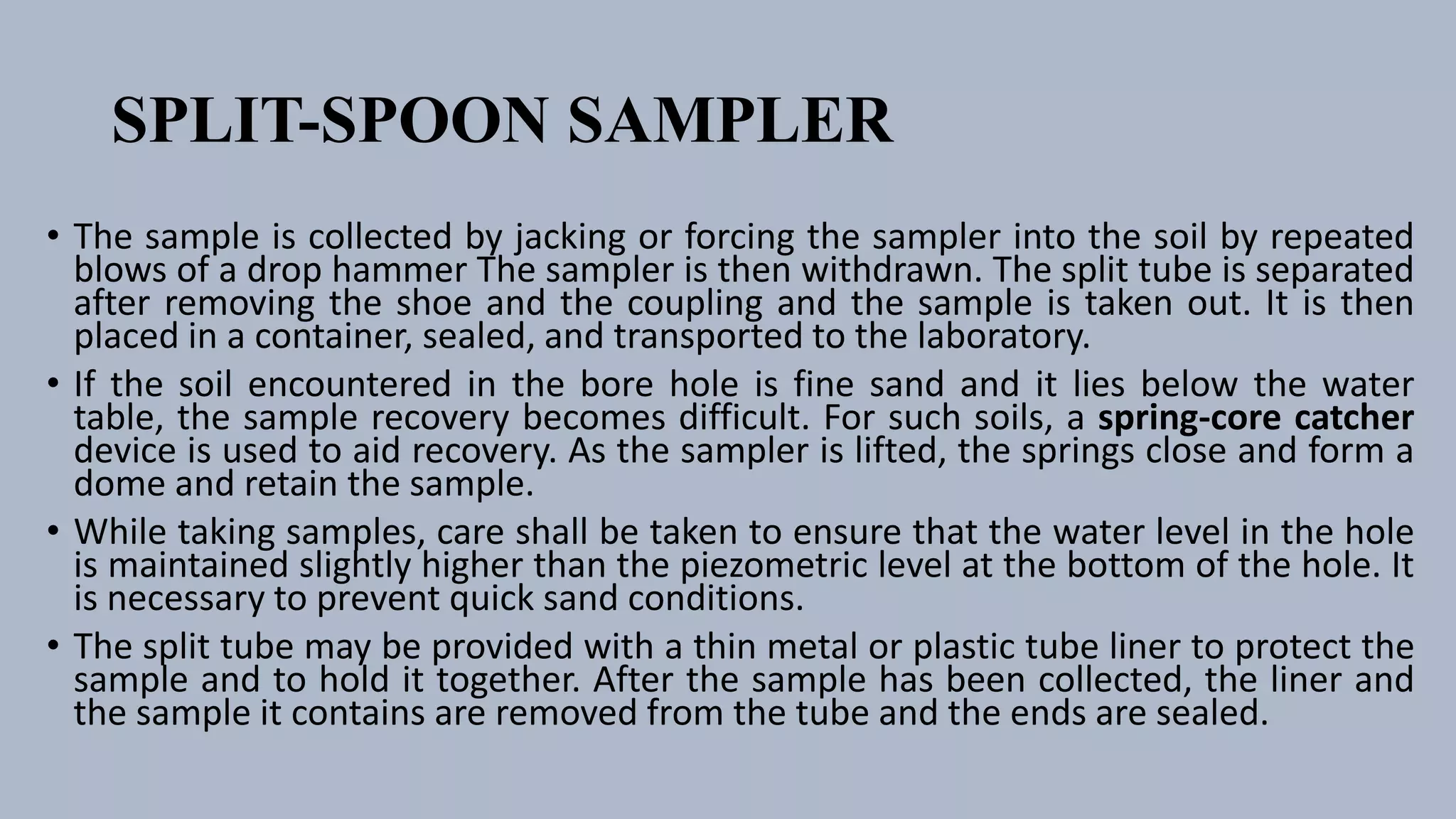 16. Subsoil investigation: SPT Sampling Methods by Split spoon sampler ...
