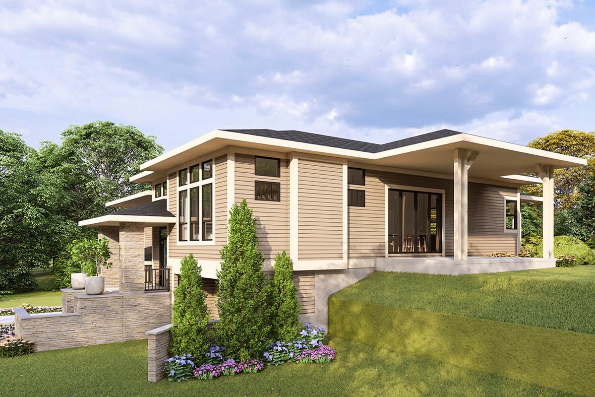 Modern Split-Level House Plan with Front-Sloping Lot - 3101 Sq Ft ...