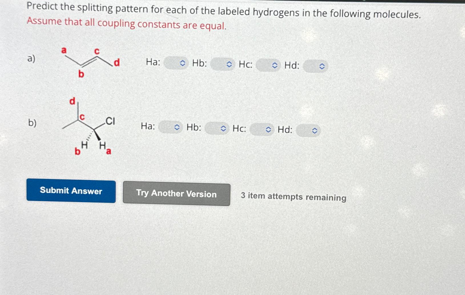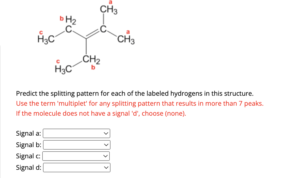 SOLVED: 2. (3 points) Identify what the splitting pattern is for each ...