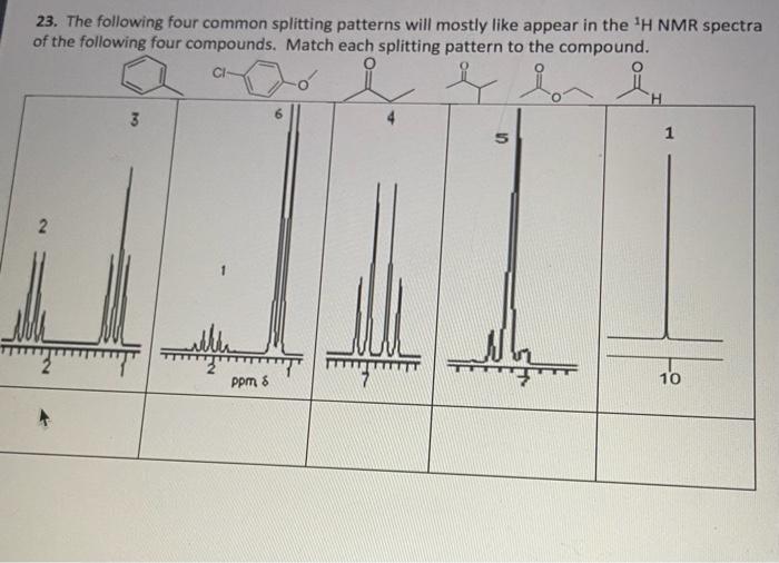 Solved 23. The following four common splitting patterns will | Chegg.com