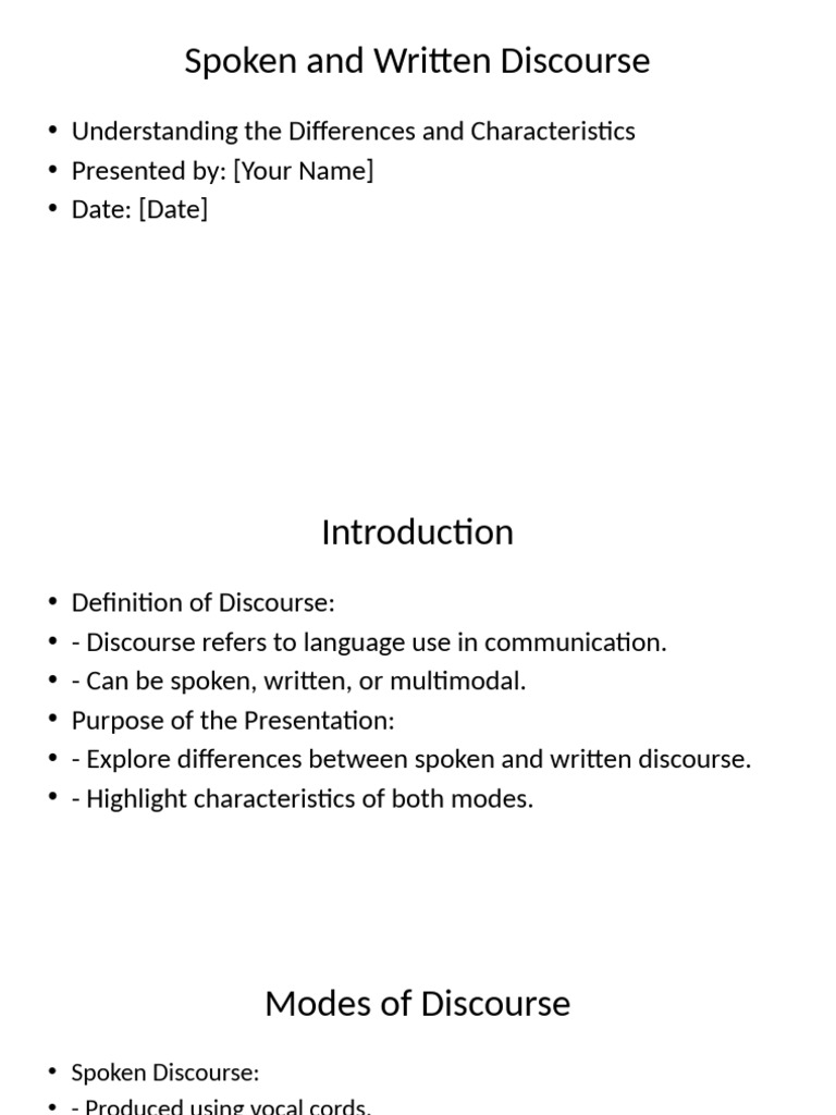 SOLUTION: Differences between spoken and written discourse - Studypool