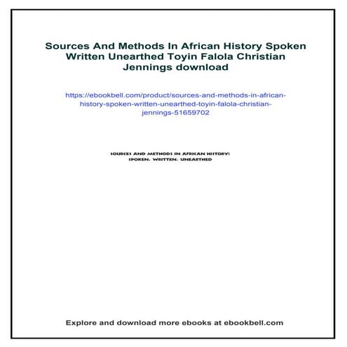 Sources And Methods In African History Spoken Written Unearthed Toyin ...