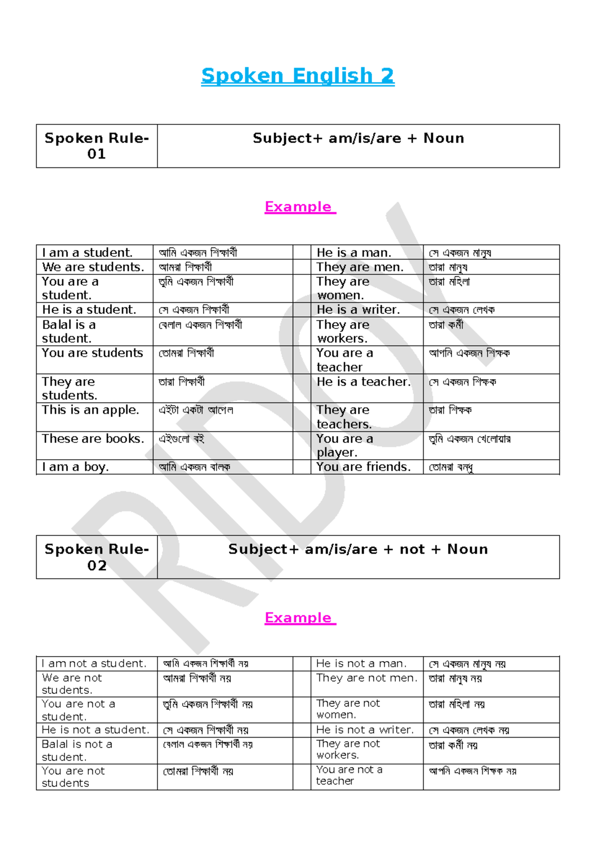Spoken English 2: Noun Examples and Contractions Guide - Studocu
