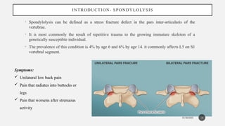 SPONDYLOLYSIS- SPINAL ORTHOTIC MANAGEMENT | PPTX