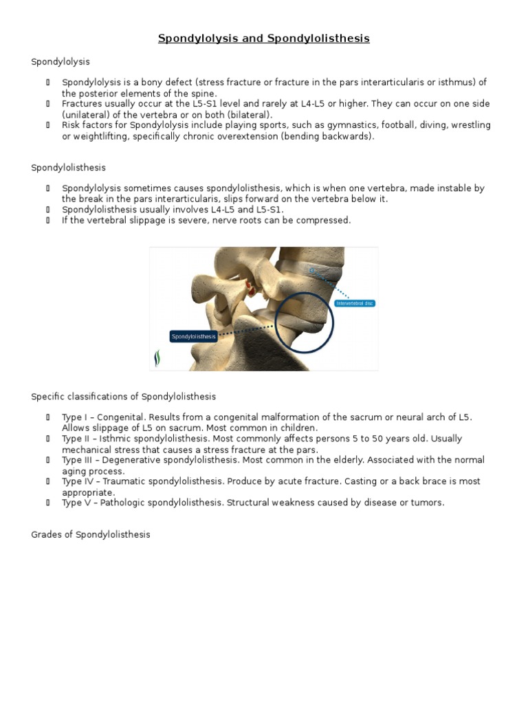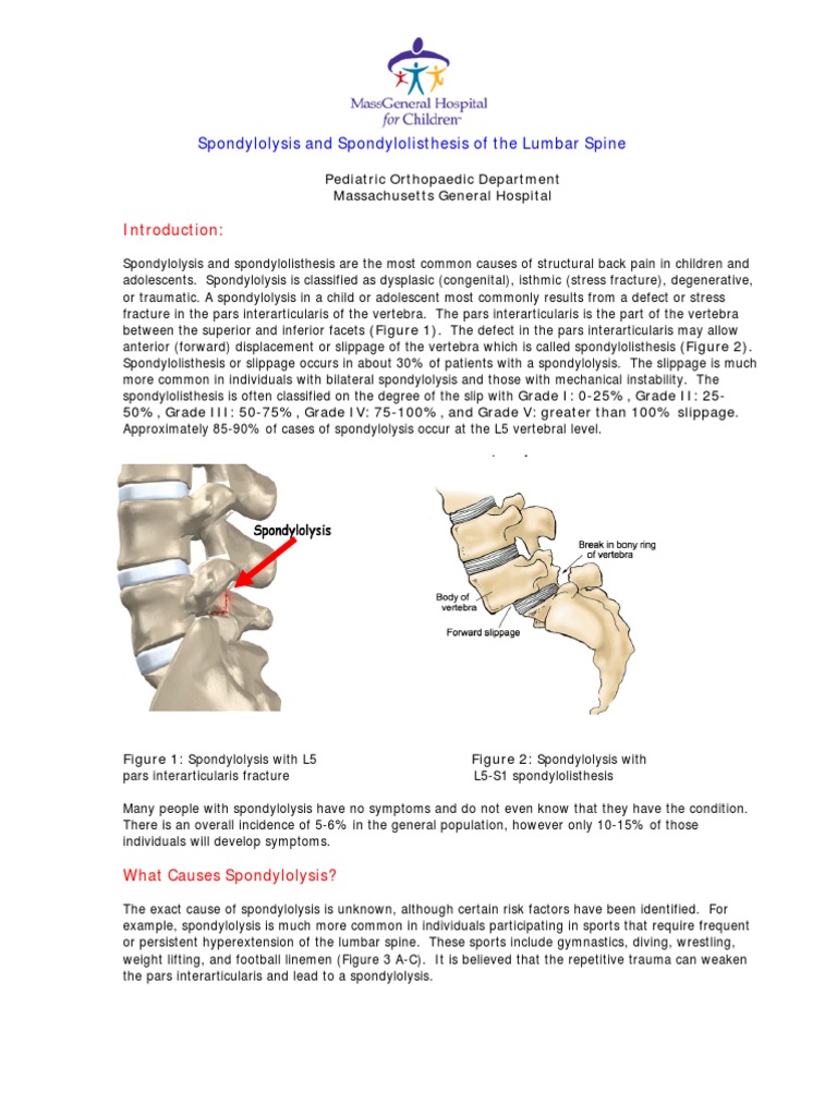 Spondylolysis and Spondylolisthesis Handout | PDF | Vertebral Column ...