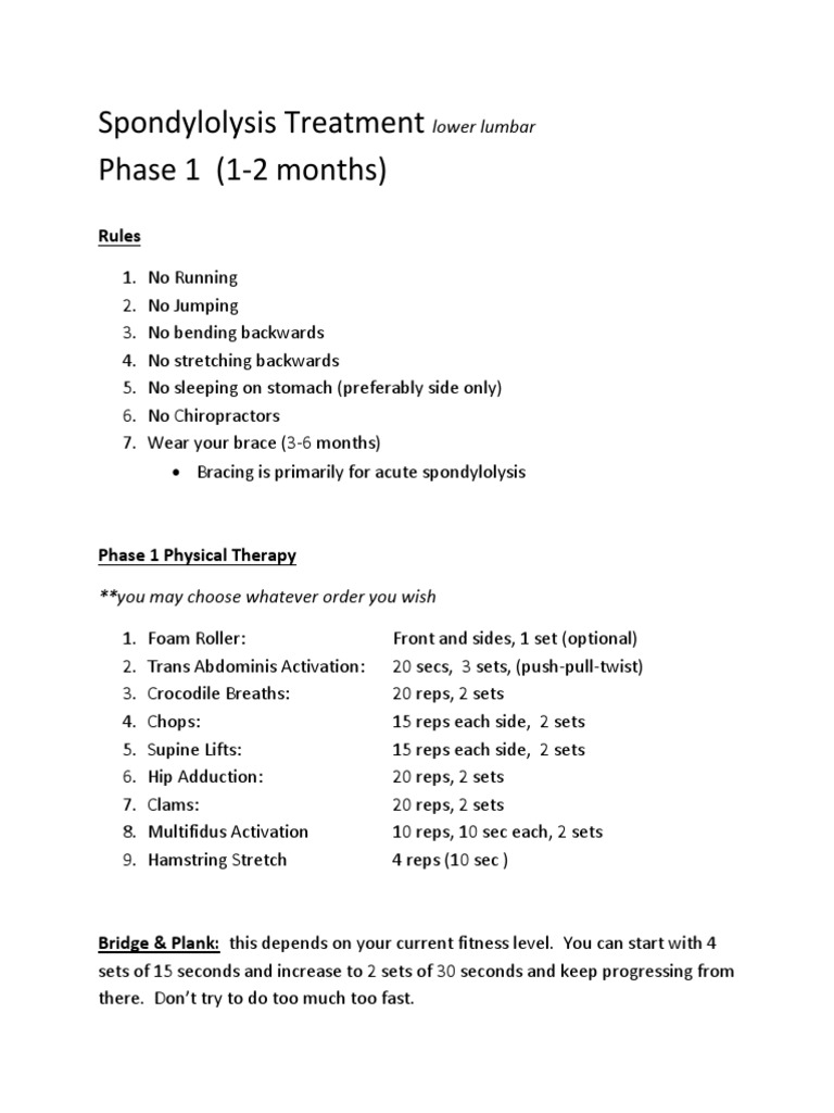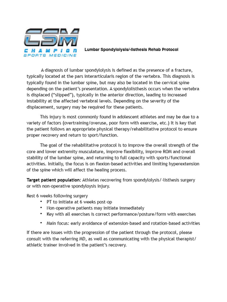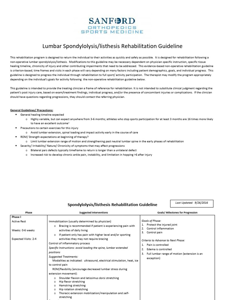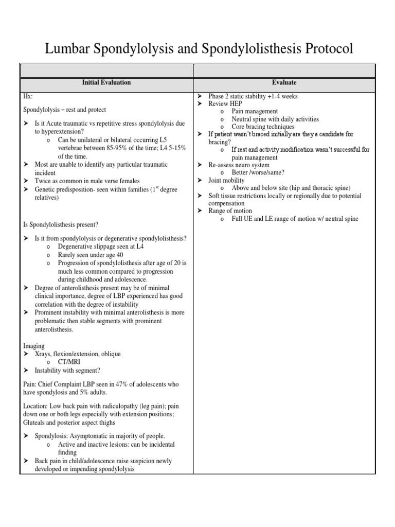 Lumbar Spondylolysis Spondylolisthesis Protocol | PDF | Clinical ...