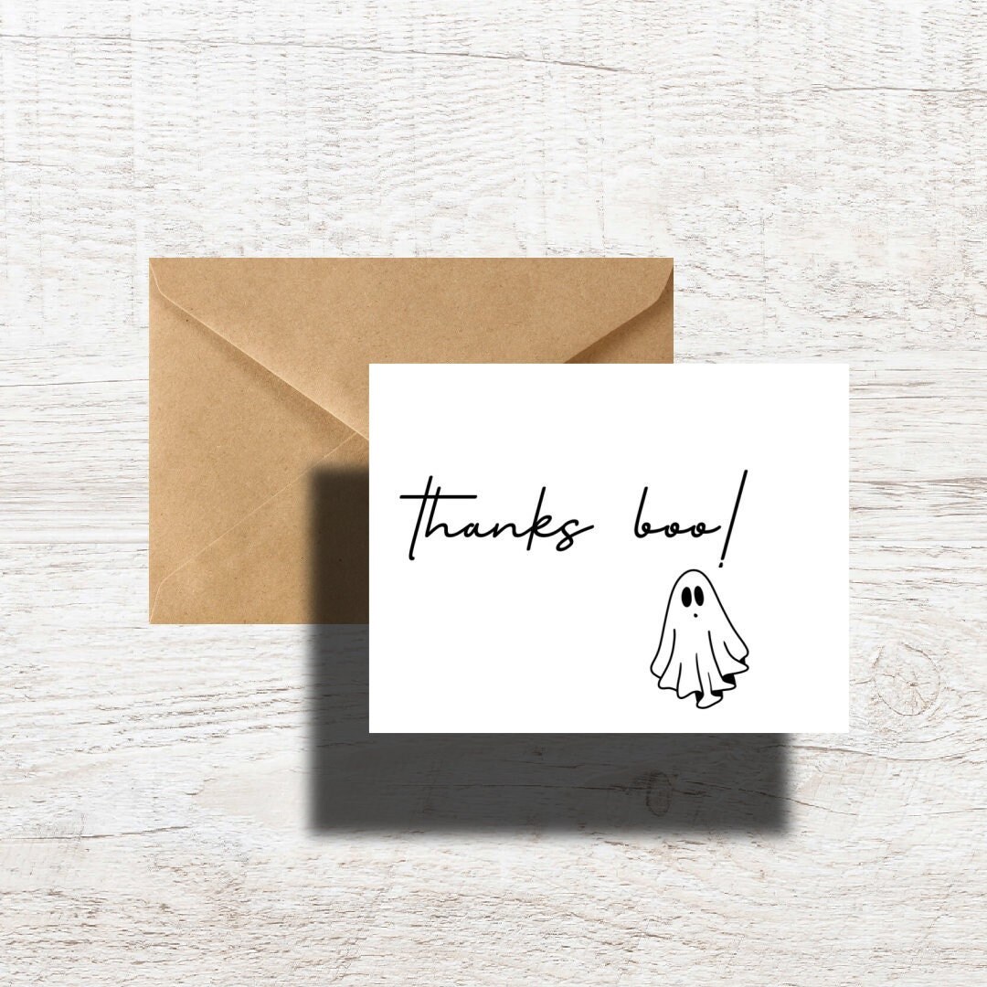 Halloween Spooky Note Cards Thanks Boo Cute Ghost Cards Pack With Kraft ...