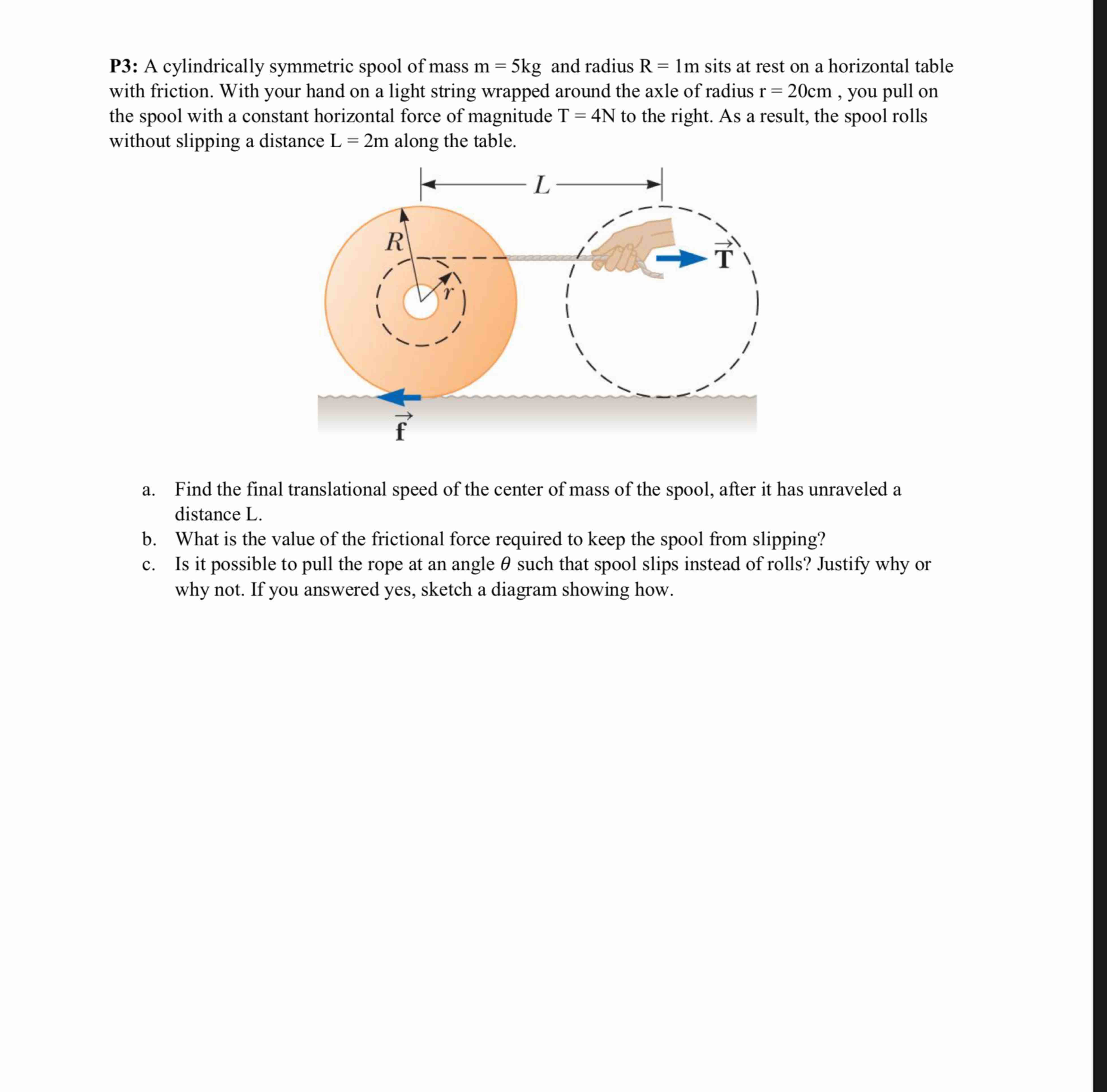 SOLVED: A spool with an inner radius and an outer radius R is pulled by ...